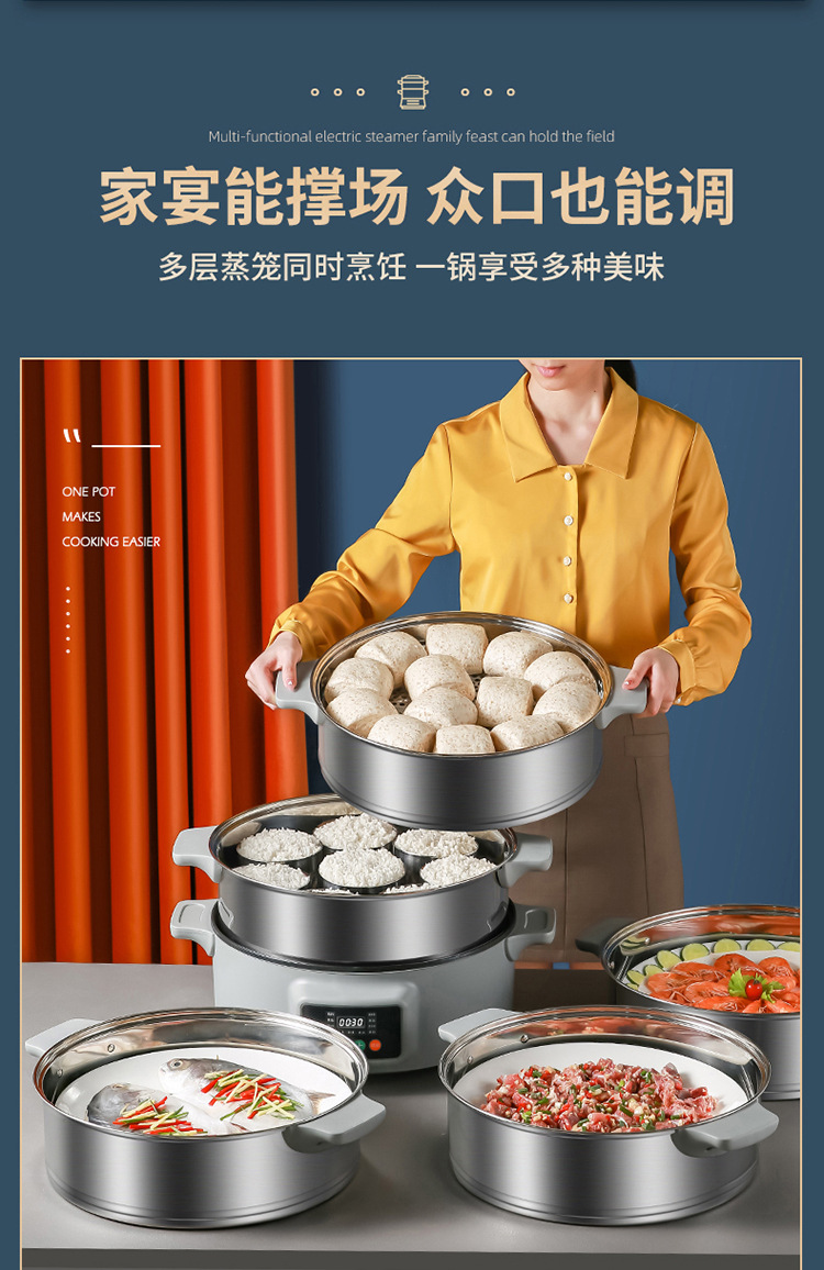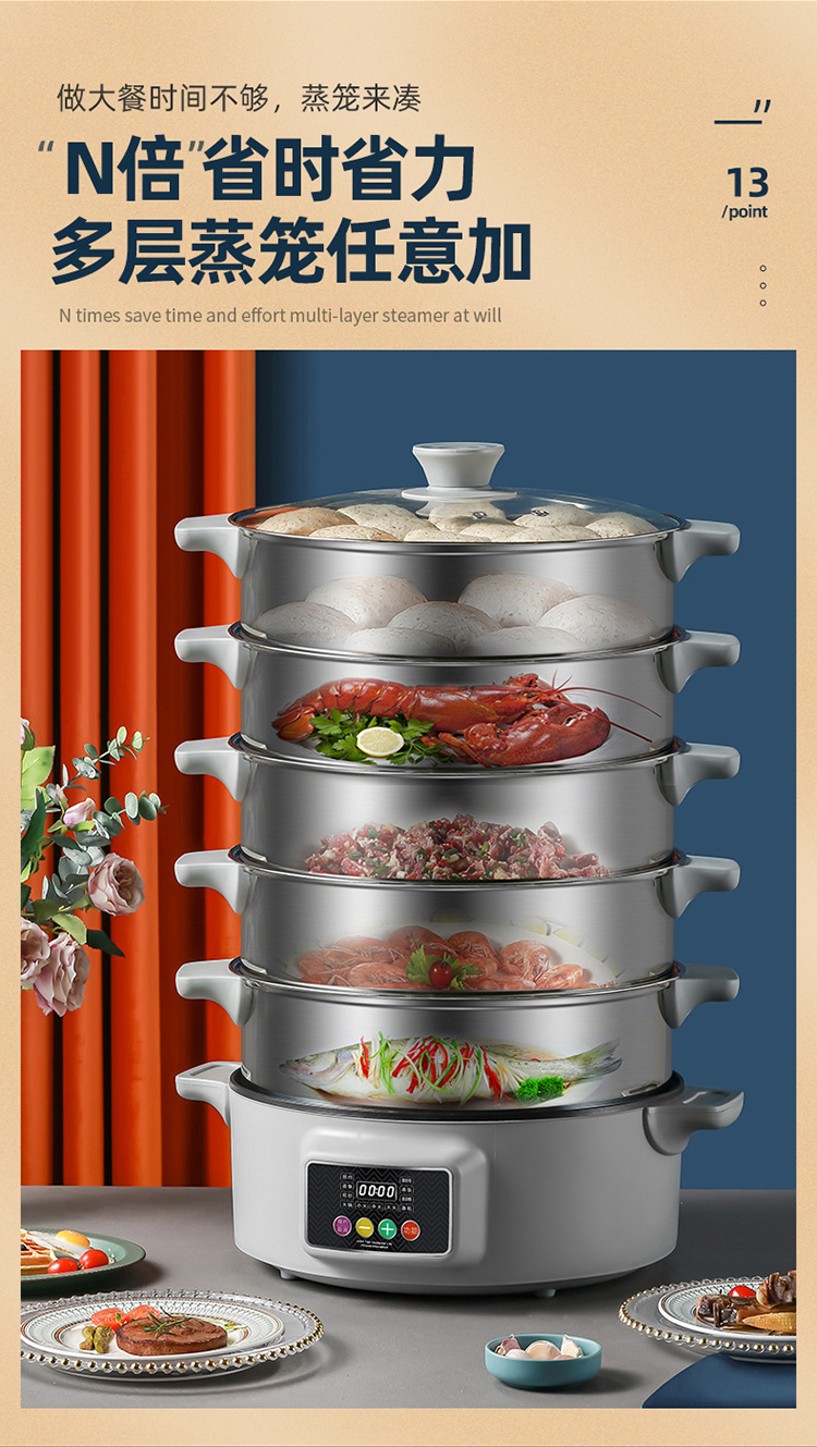 전기 찜기 다기능 가정용 대용량 지능형 예약 전기 냄비 3 개 5 층 찜기 냄비스토어 가기
