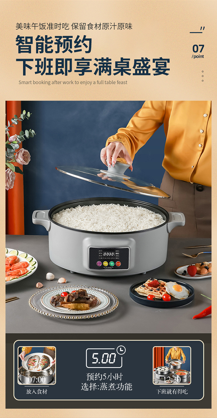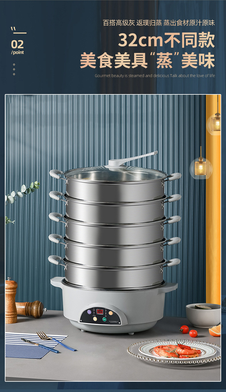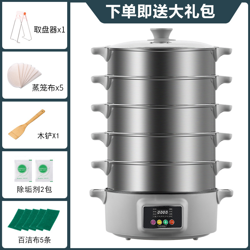 전기 찜기 다기능 가정용 대용량 지능형 예약 전기 냄비 3 개 5 층 찜기 냄비