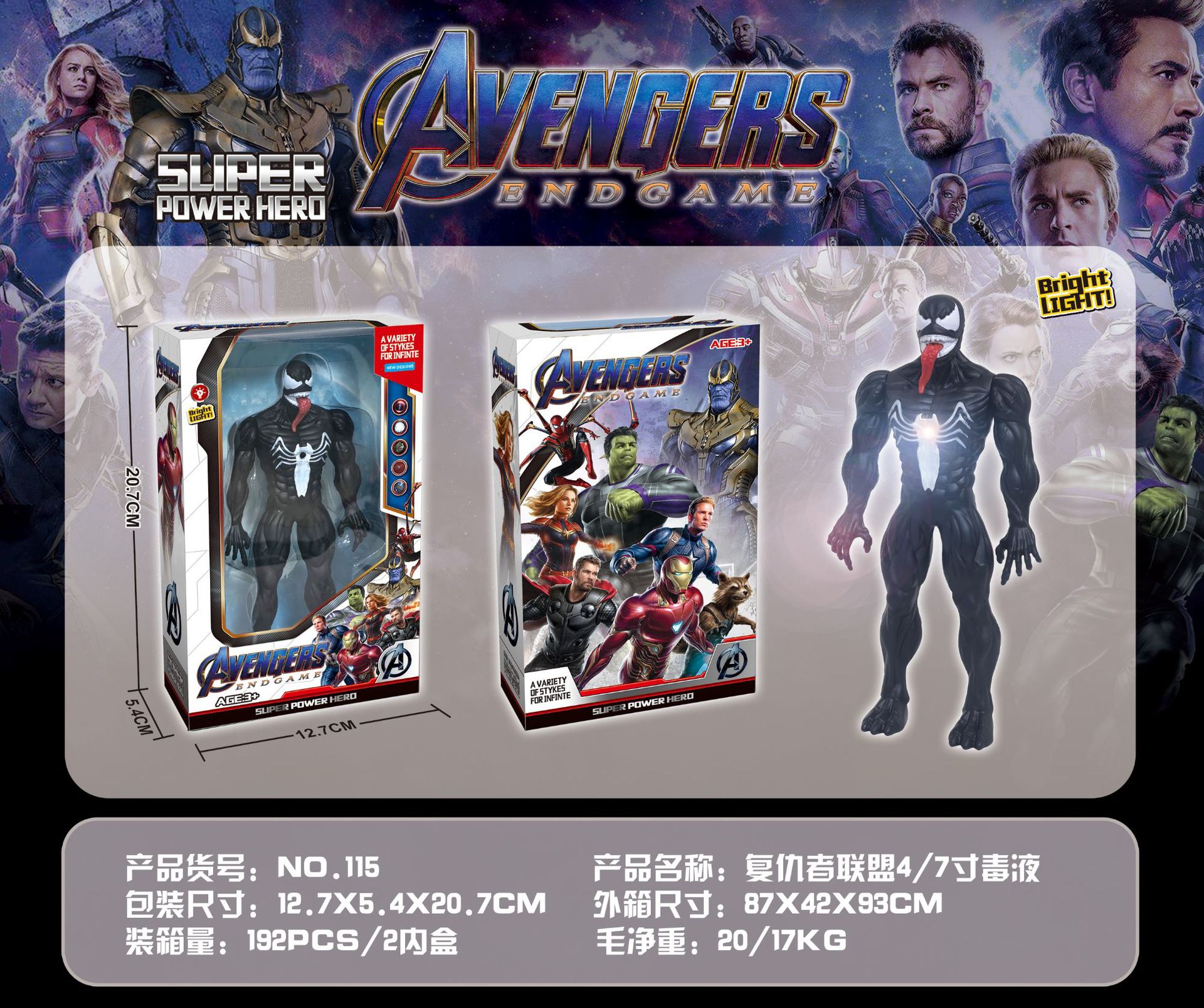 毒液:彩盒包装221克,OPP袋装127克