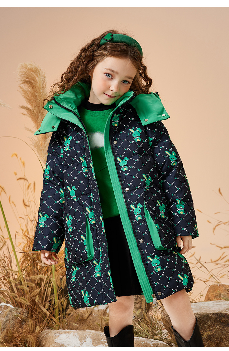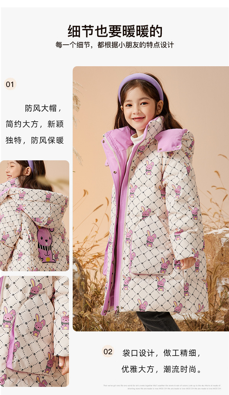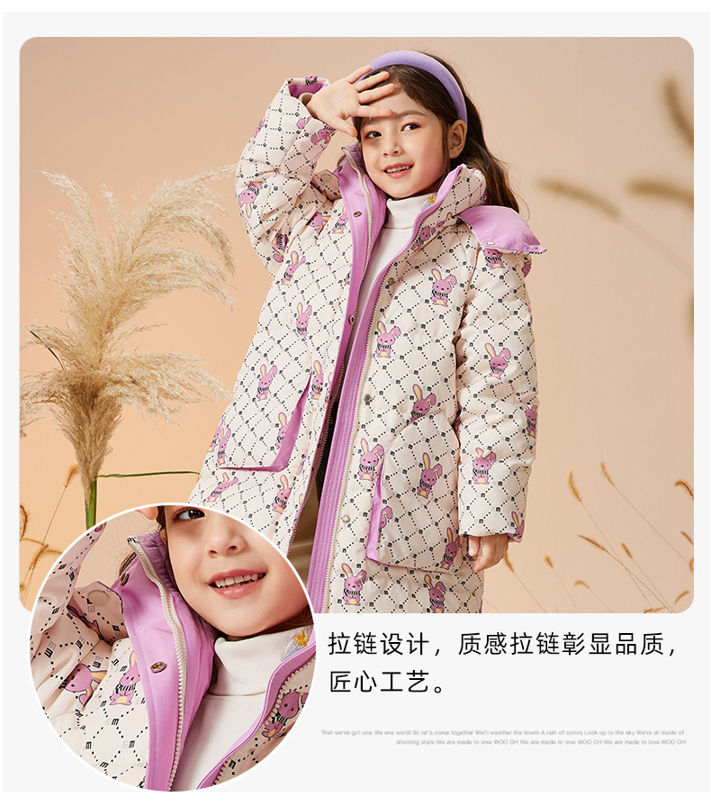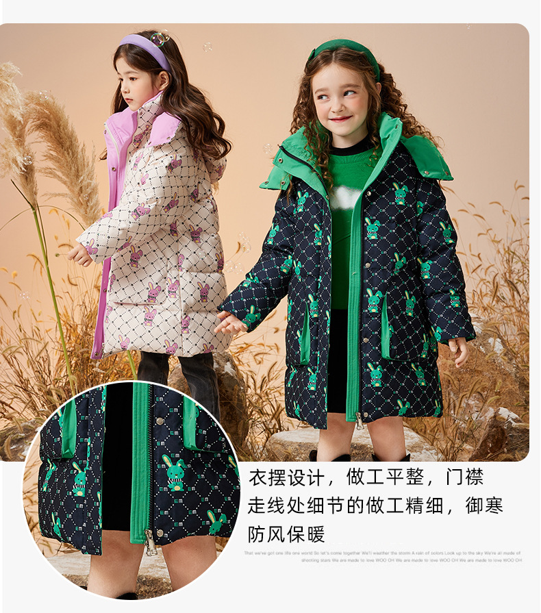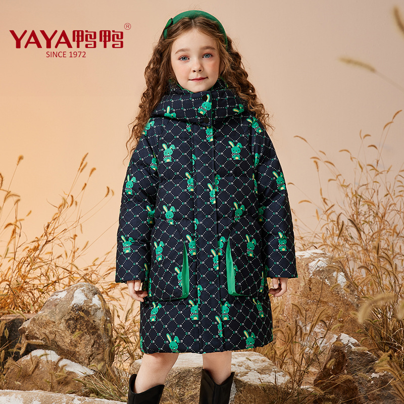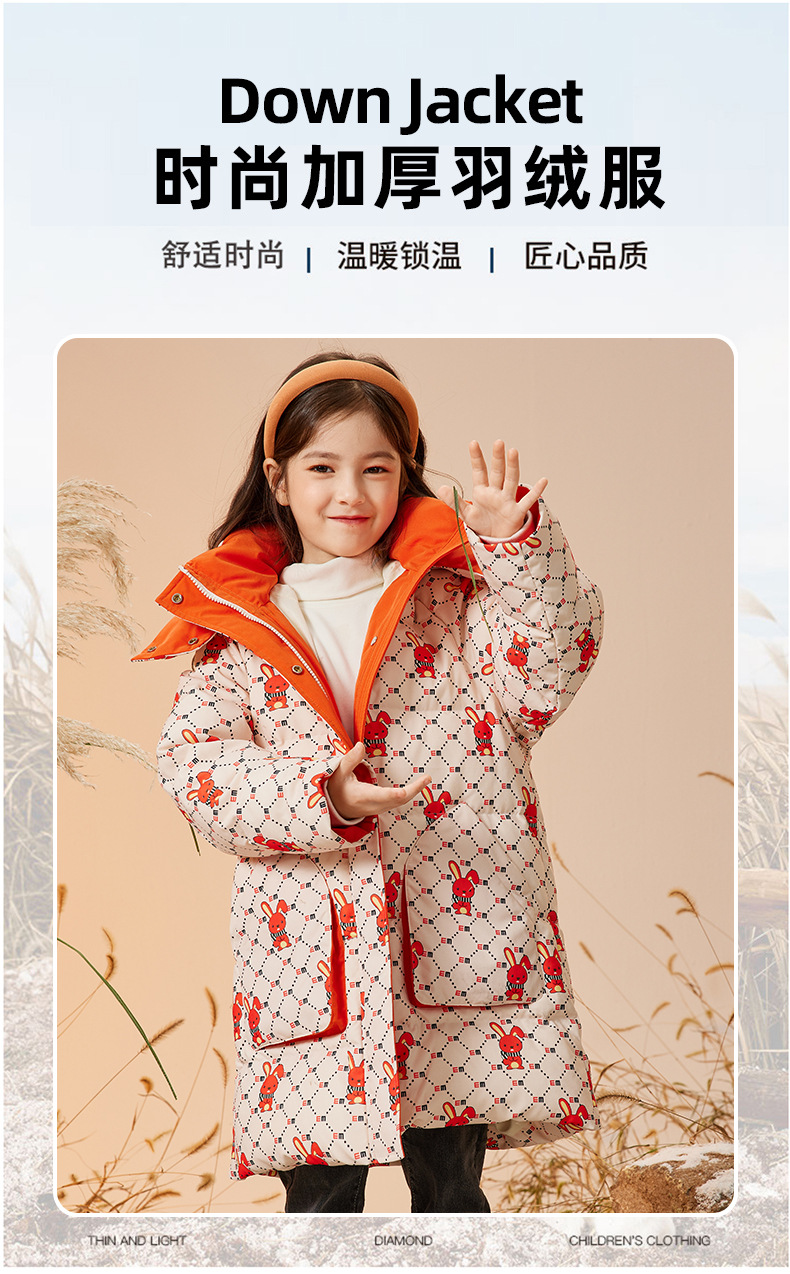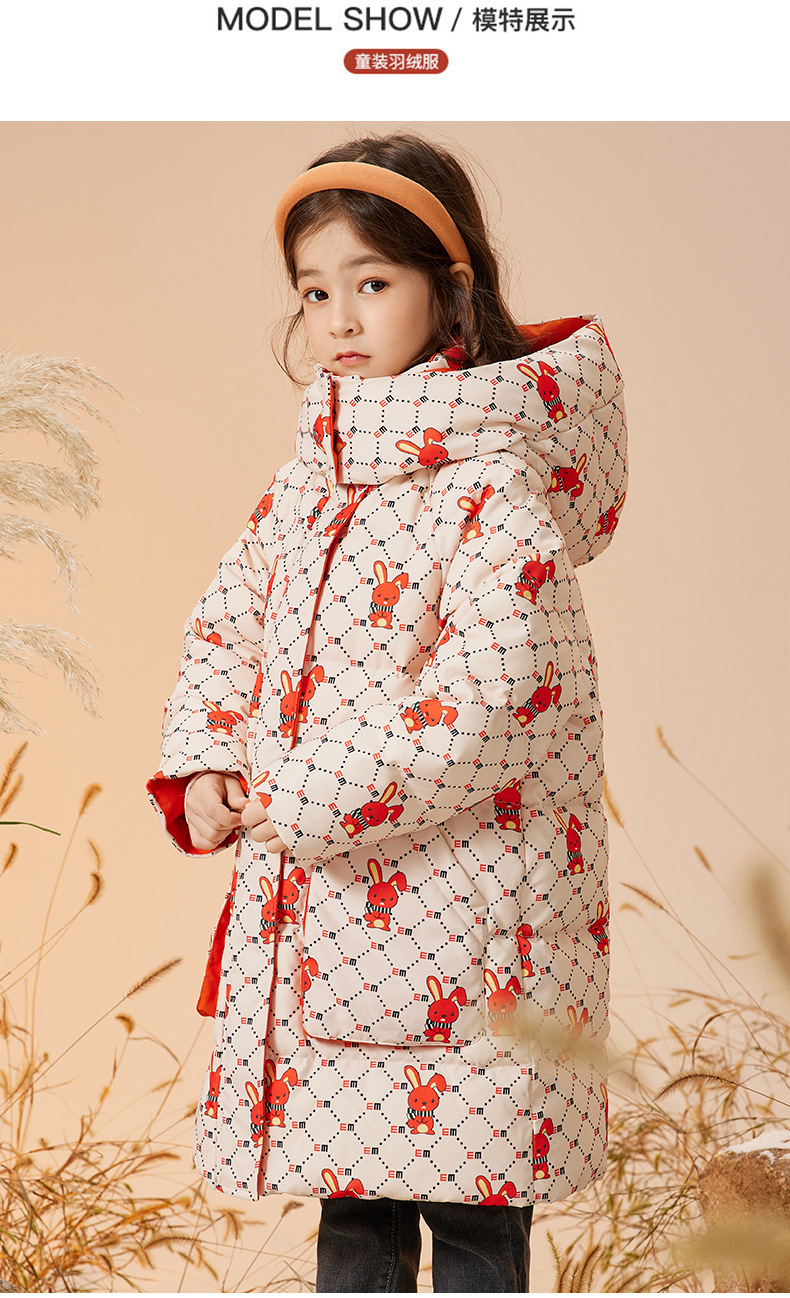 오리와 오리 정품 어린이 다운 재킷 중간 길이 다운 재킷 소녀 두꺼운 유행 후드 자켓
