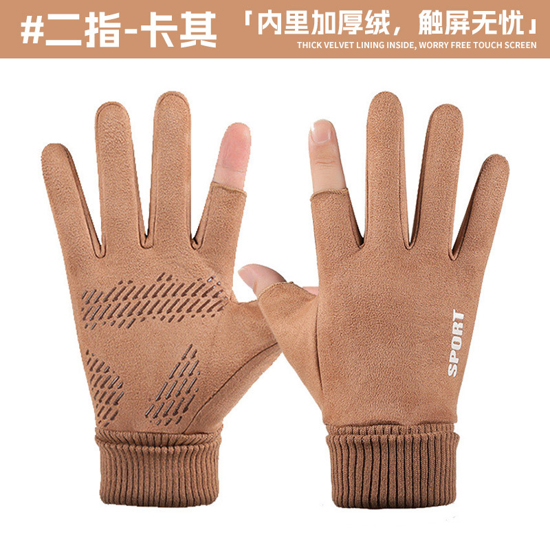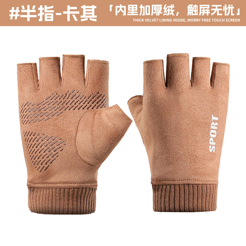 • 카키색 반장갑 (남성용) [업그레이드 안감 · 부드러운 촉감 & 보온]