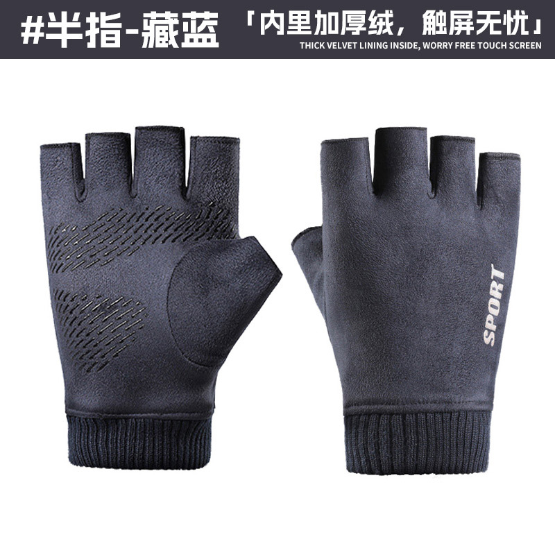 • 남성용 네이비 반장갑 (업그레이드 안감 · 부드러운 촉감 & 보온성 강화)