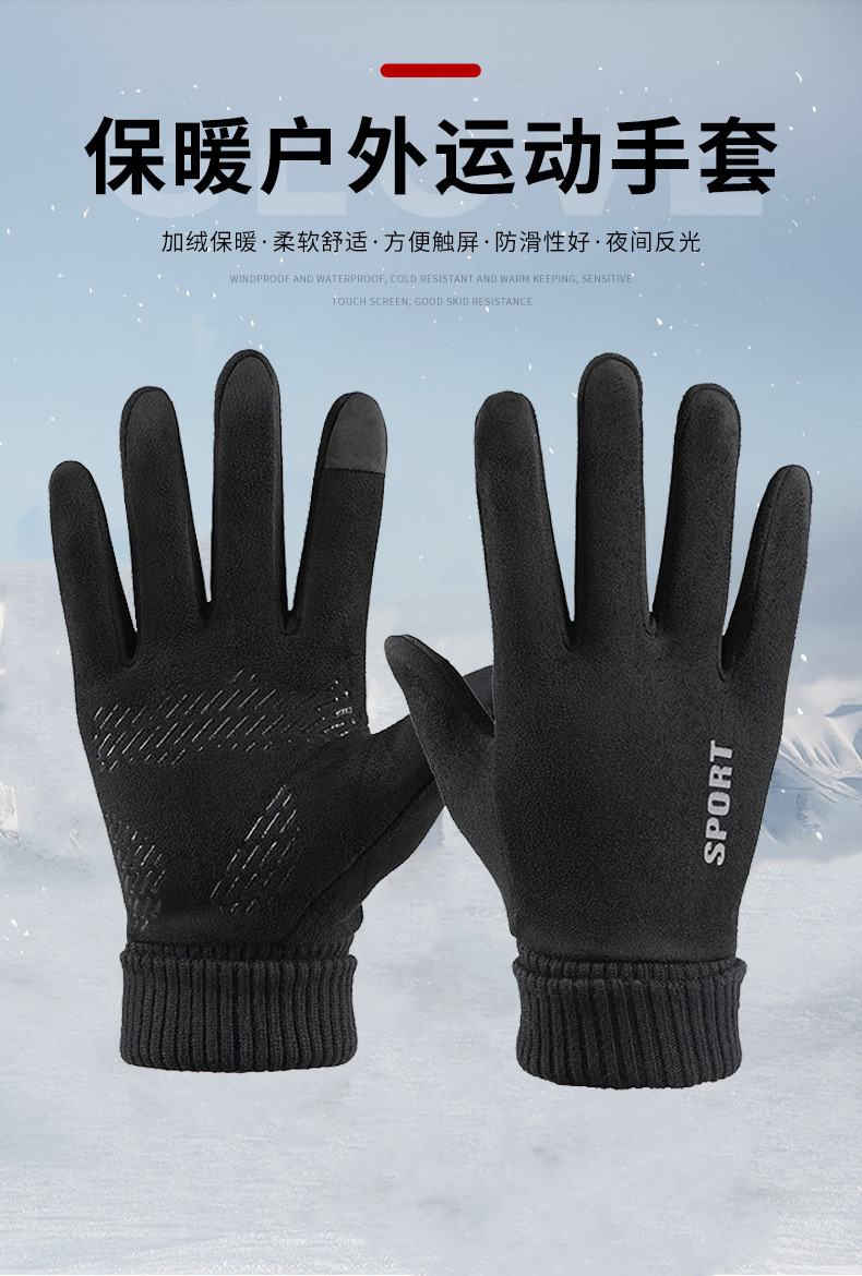 도매 겨울용 보온 장갑, 벨벳 안감, 두꺼운 터치스크린 장갑, 인기 야외 라이딩 및 운전용 방풍 및 미끄럼 방지 장갑, 남녀 공용