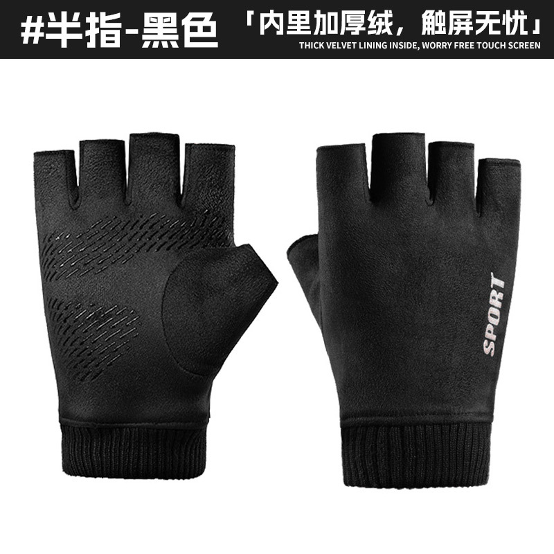 • 검정색 반장갑 (남성용) [업그레이드 안감 · 부드러운 촉감, 보온성 강화]