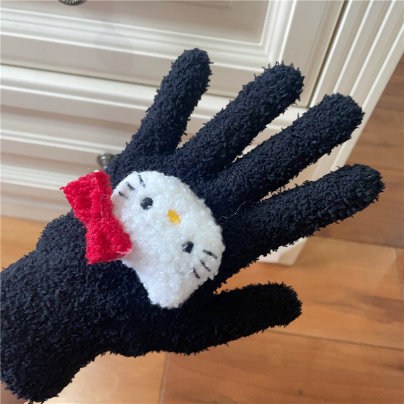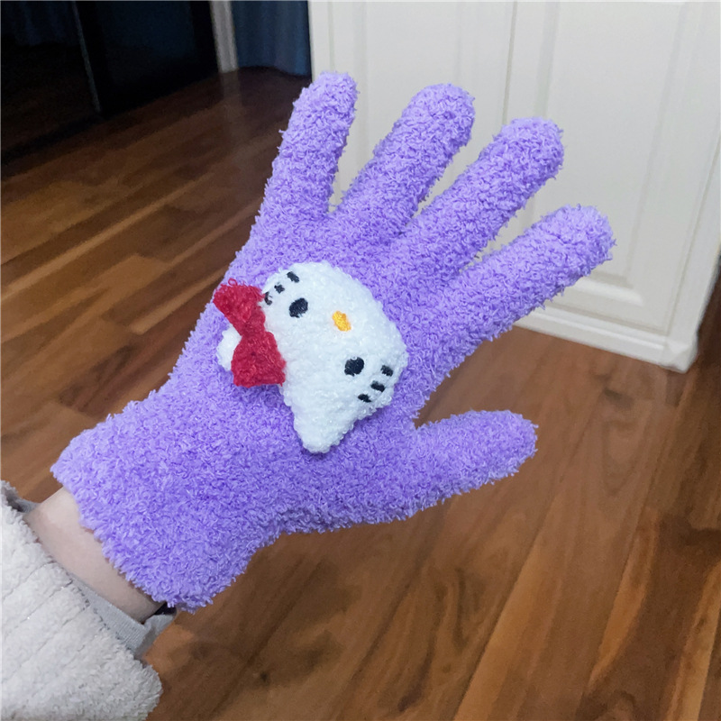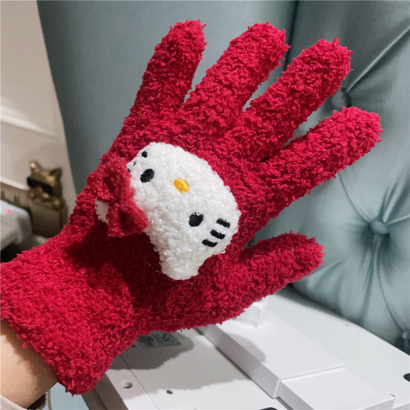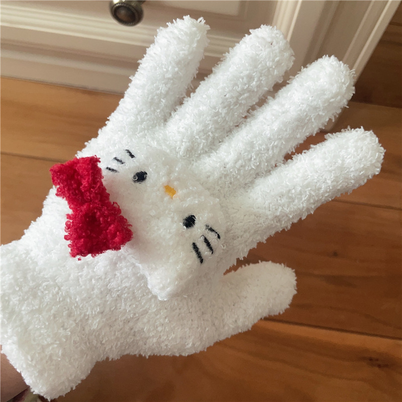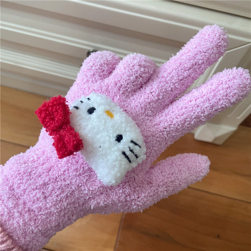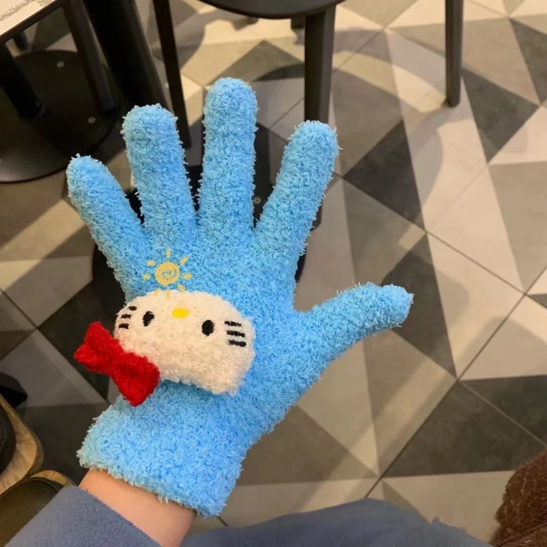 Xiaohongshu의 같은 스타일 귀여운 고양이 캔디 컬러 kt 고양이 키티 두꺼운 플러시 겨울 따뜻한 산호 벨벳 장갑스토어 가기