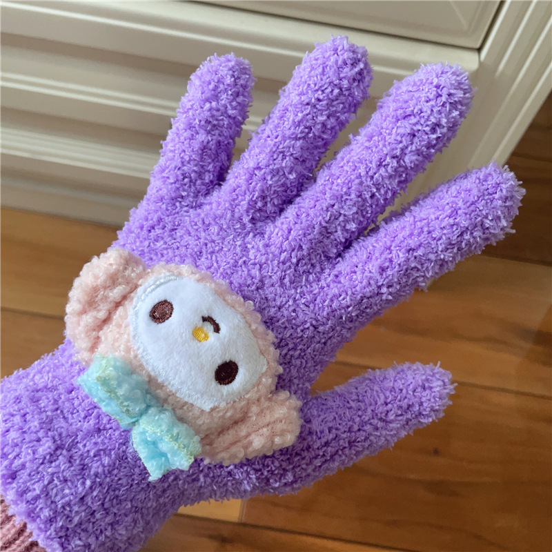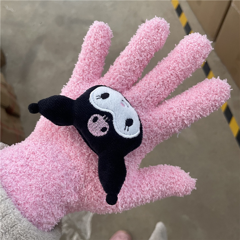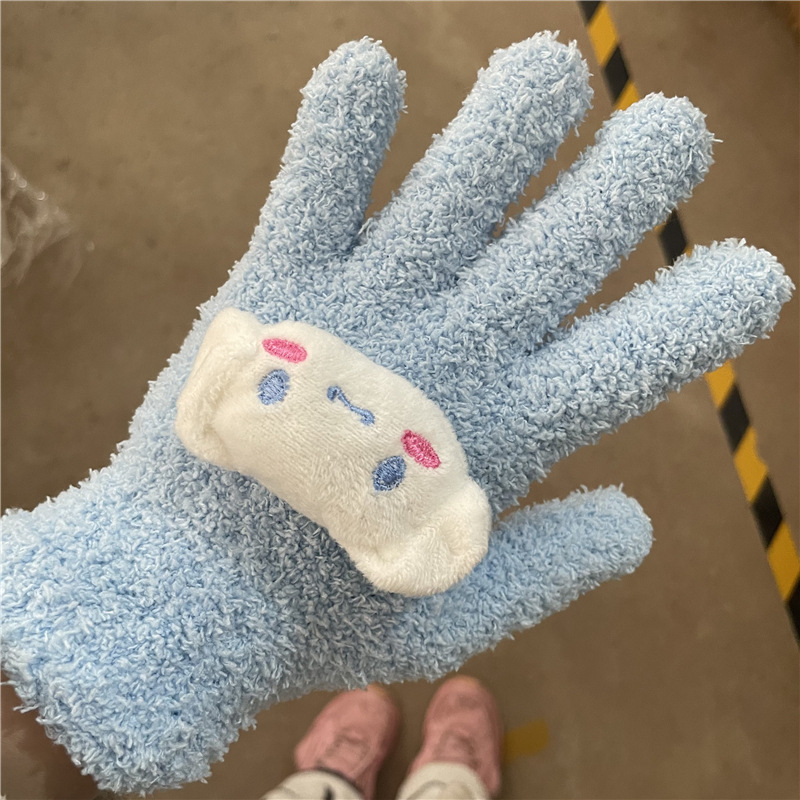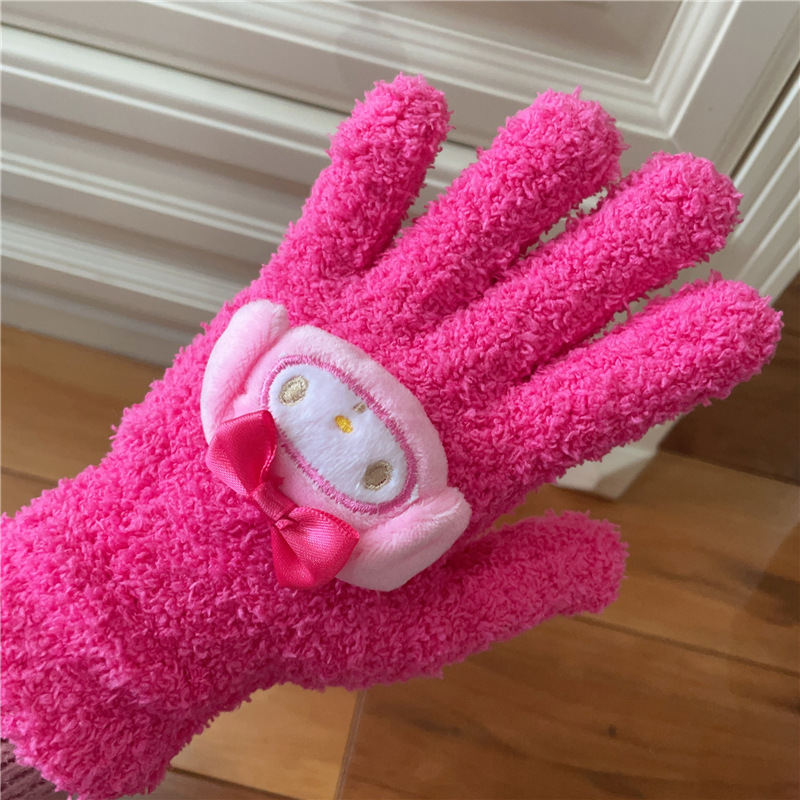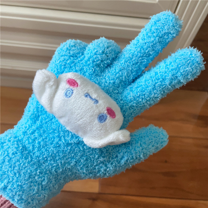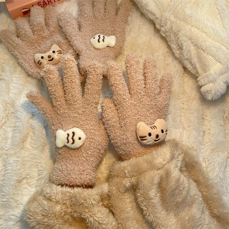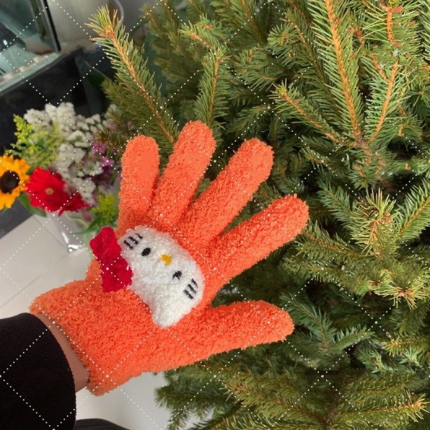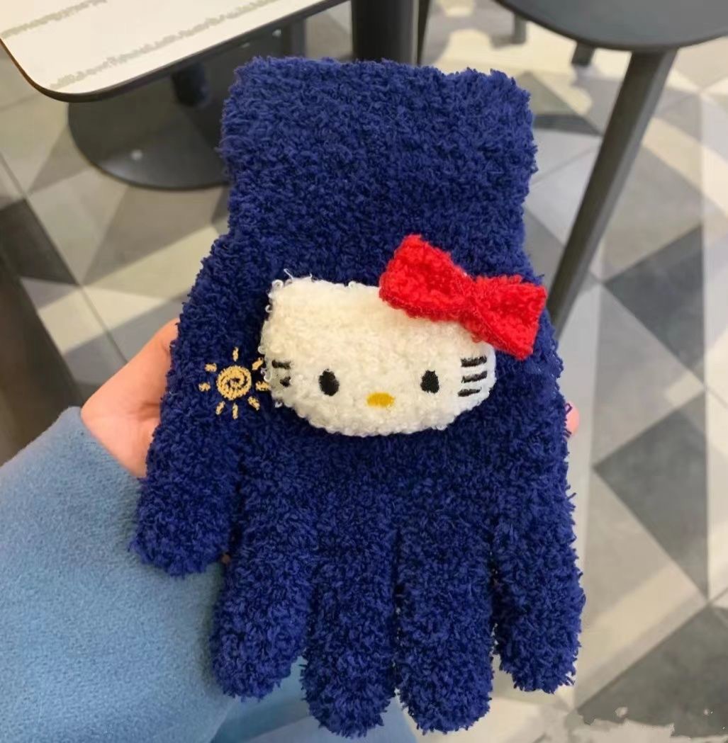 Xiaohongshu의 같은 스타일 귀여운 고양이 캔디 컬러 kt 고양이 키티 두꺼운 플러시 겨울 따뜻한 산호 벨벳 장갑스토어 가기
