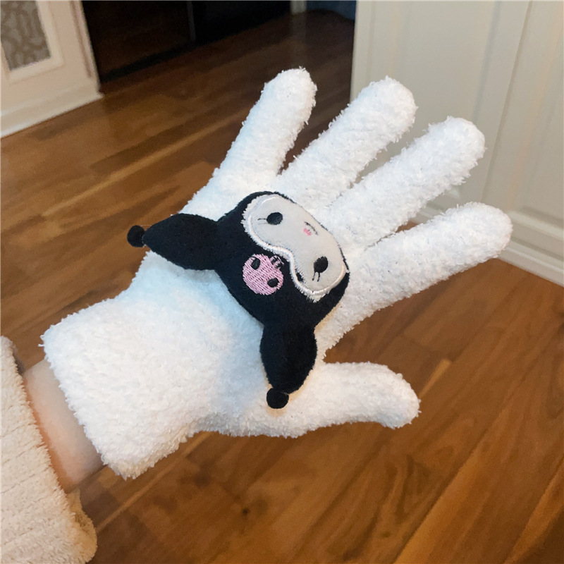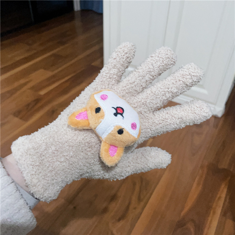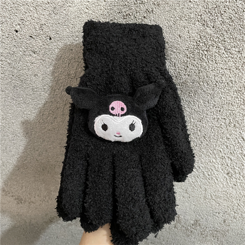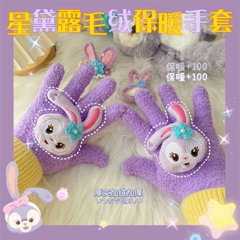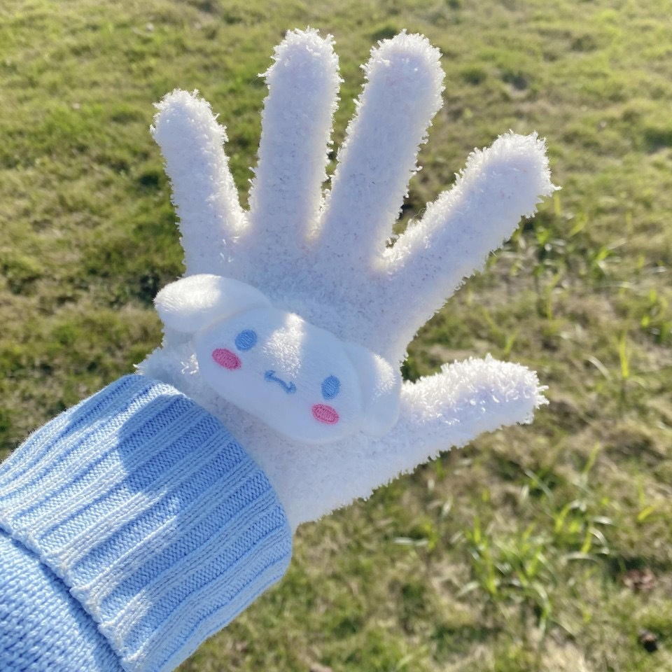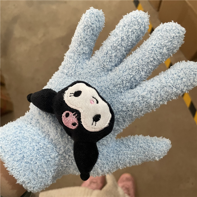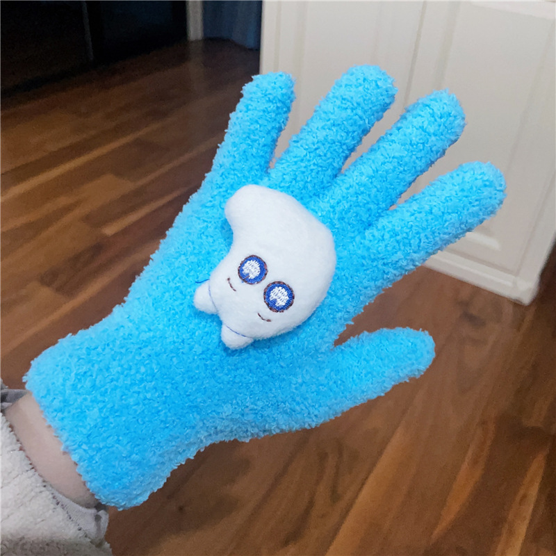 Xiaohongshu의 같은 스타일 귀여운 고양이 캔디 컬러 kt 고양이 키티 두꺼운 플러시 겨울 따뜻한 산호 벨벳 장갑스토어 가기