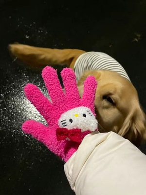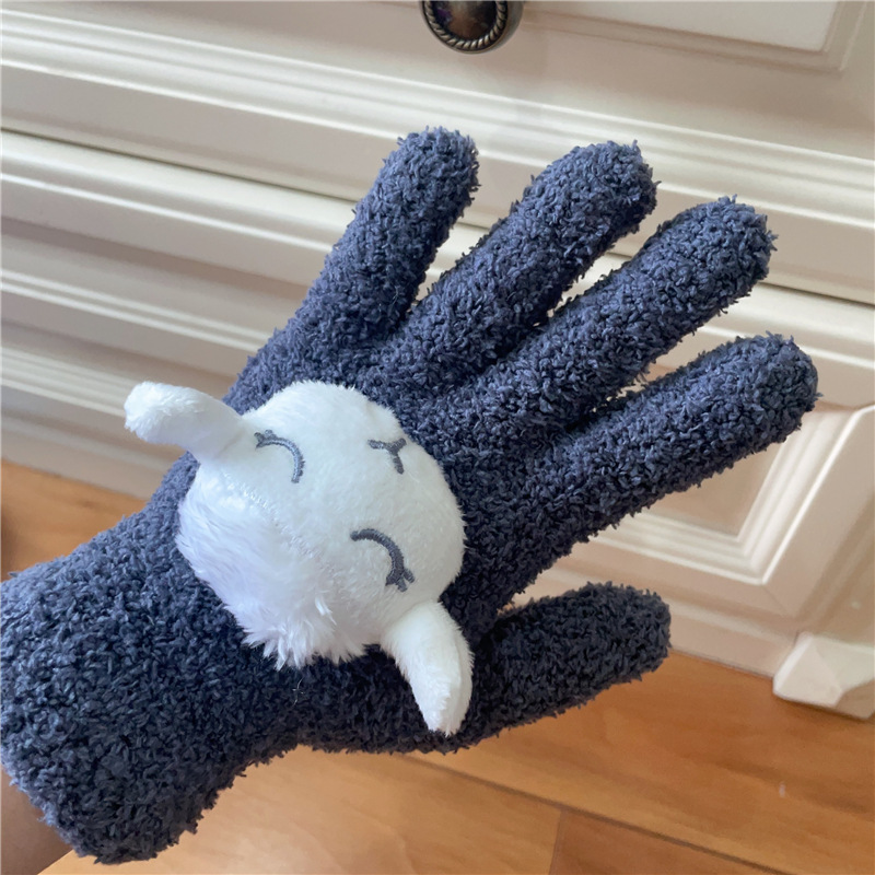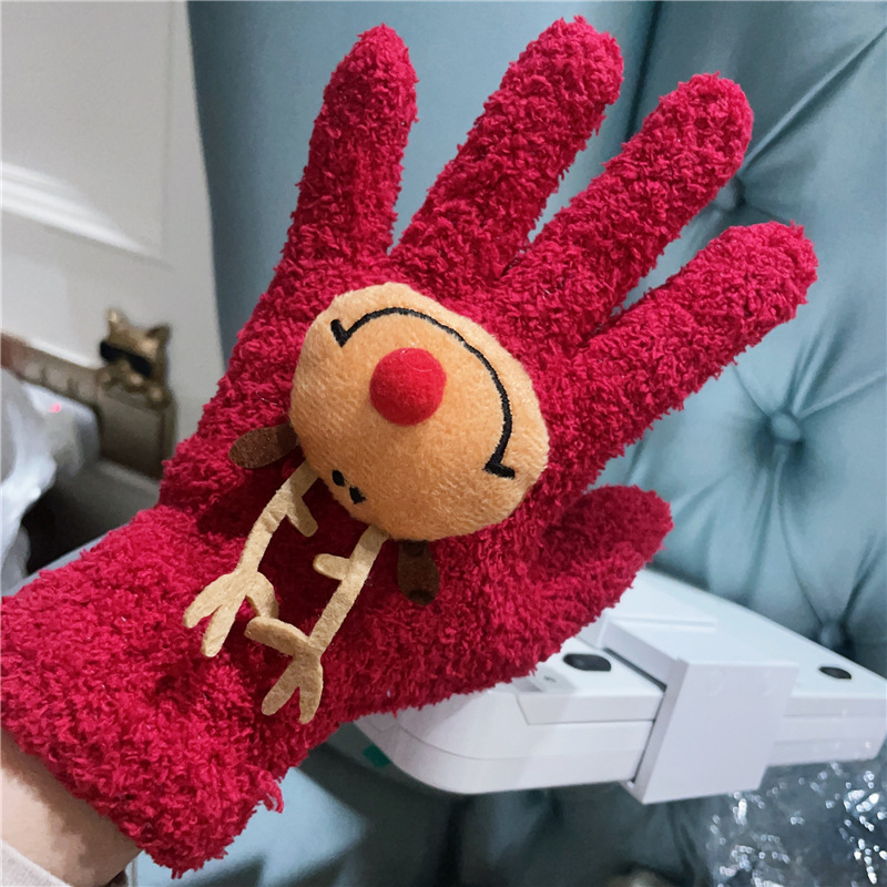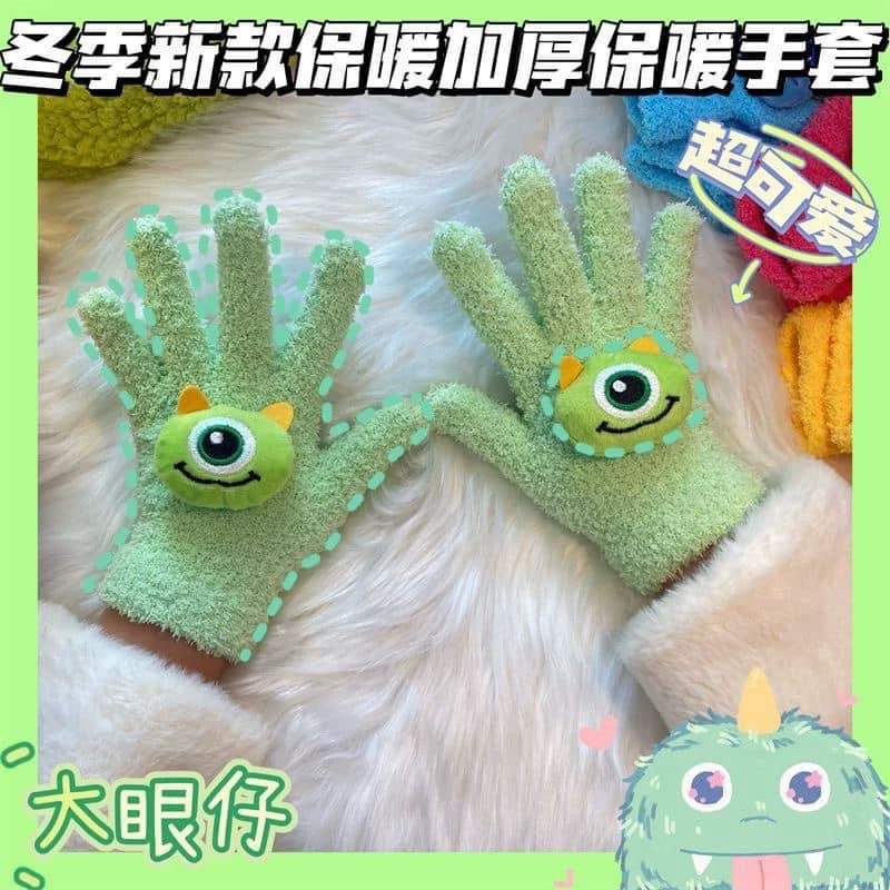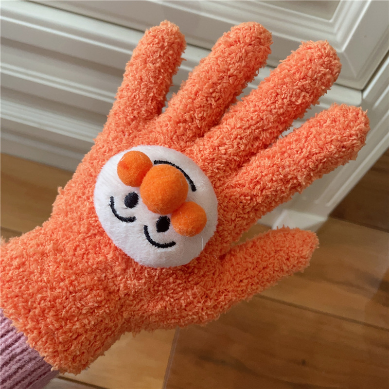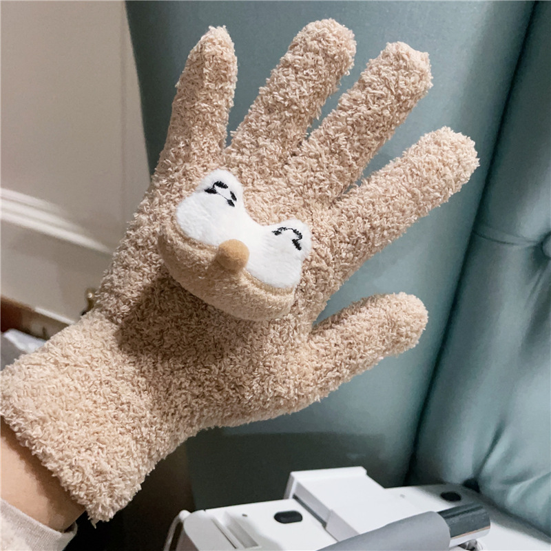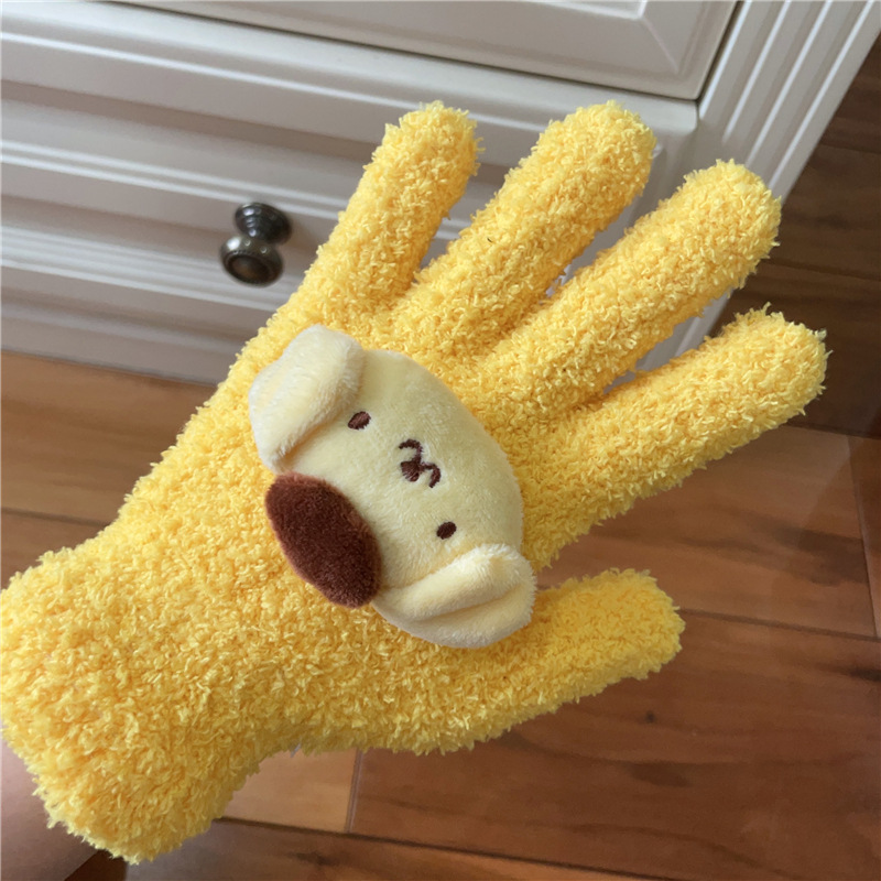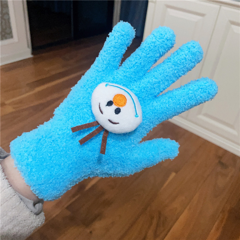 Xiaohongshu의 같은 스타일 귀여운 고양이 캔디 컬러 kt 고양이 키티 두꺼운 플러시 겨울 따뜻한 산호 벨벳 장갑스토어 가기