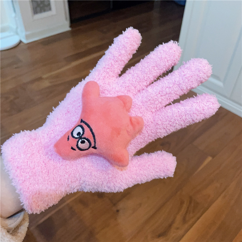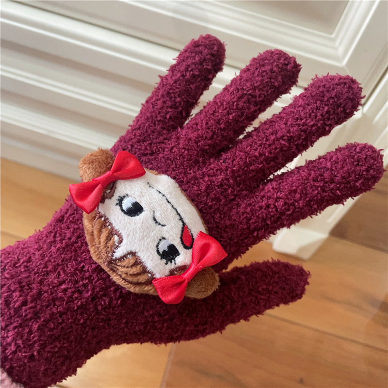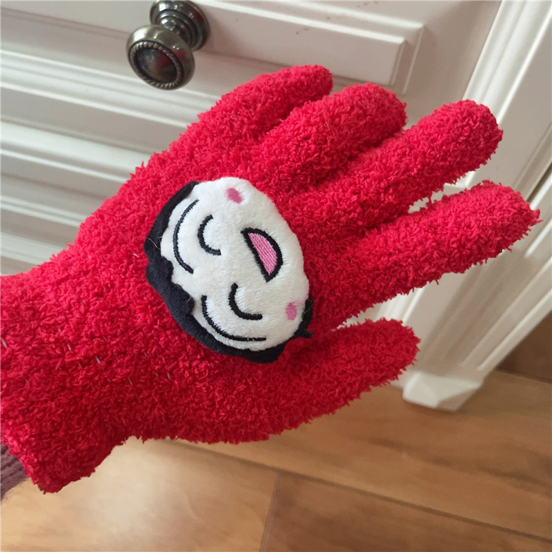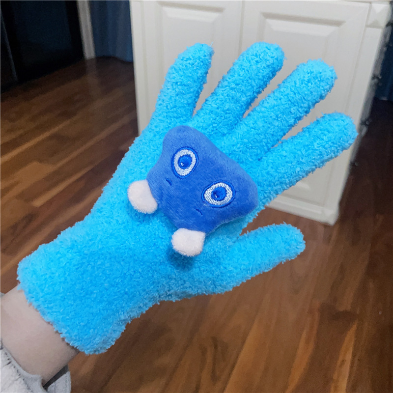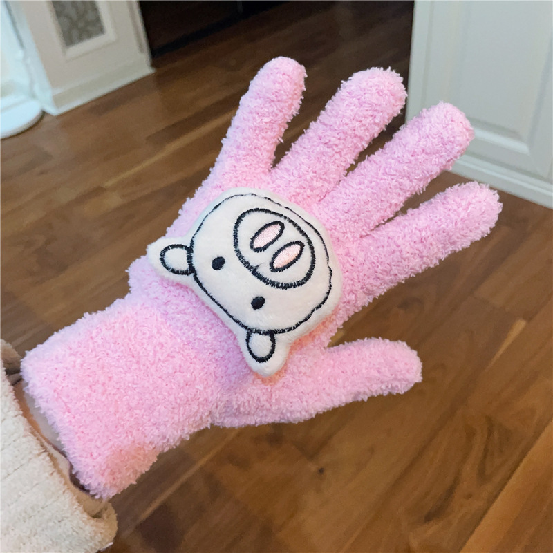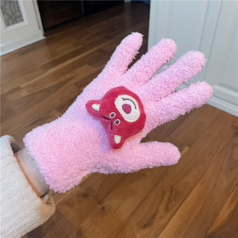Xiaohongshu의 같은 스타일 귀여운 고양이 캔디 컬러 kt 고양이 키티 두꺼운 플러시 겨울 따뜻한 산호 벨벳 장갑