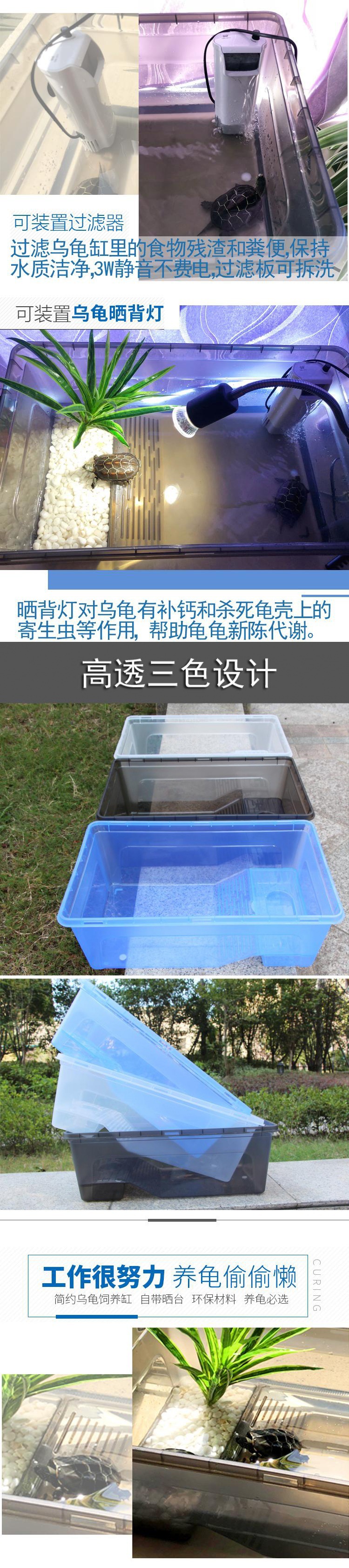 뚜껑이있는 거북이 실린더 배수가있는 초대형 거북이 상자 큰 거북이 실린더 빌라 거북이 특수 실린더 탈출 방지 먹이 상자스토어 가기