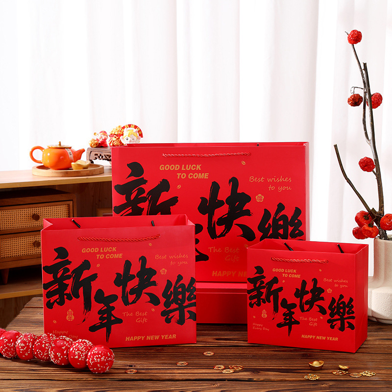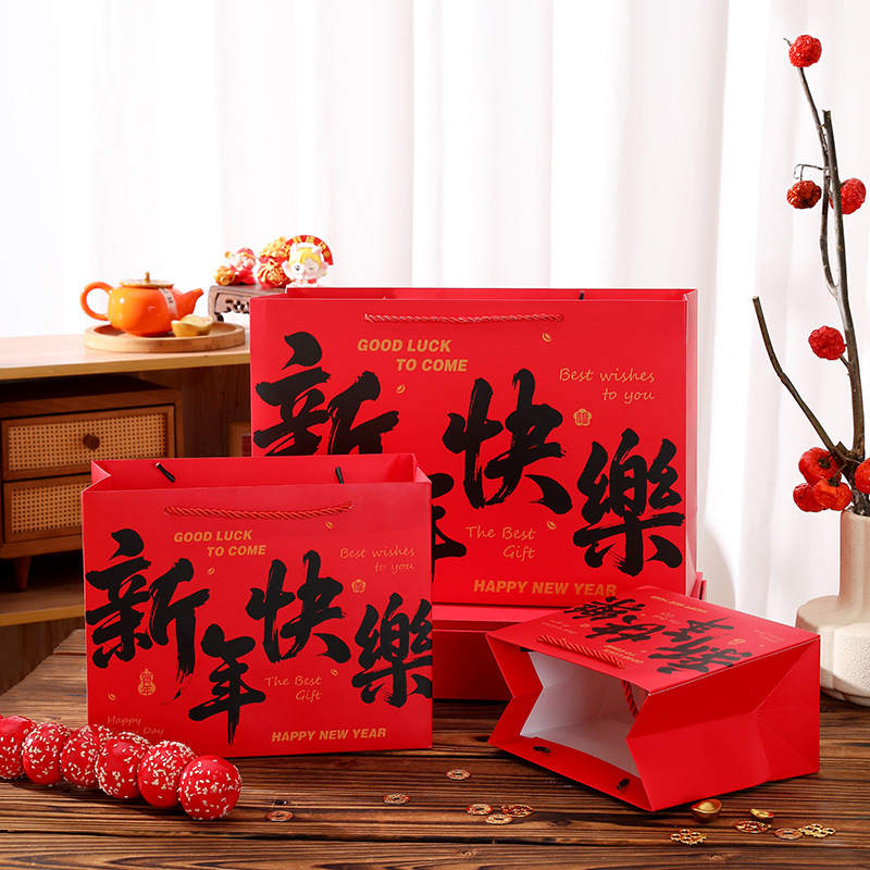 새해 선물 가방, 기념품 가방, 말의 해 핸드백, 중국풍 빨간색 포장 가방, 설날 선물 가방스토어 가기