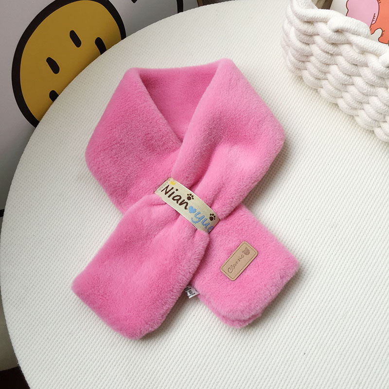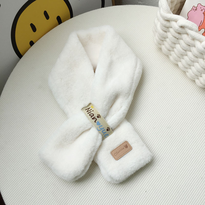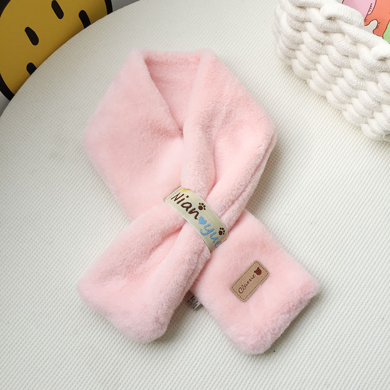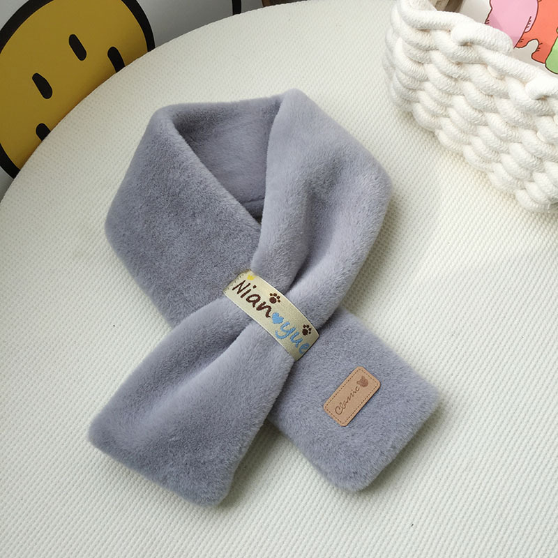 제조업체 가을 겨울 보온 두꺼운 신축성 자수 어린이용 무지 스트랩 작은 로고 아기 털 목도리스토어 가기