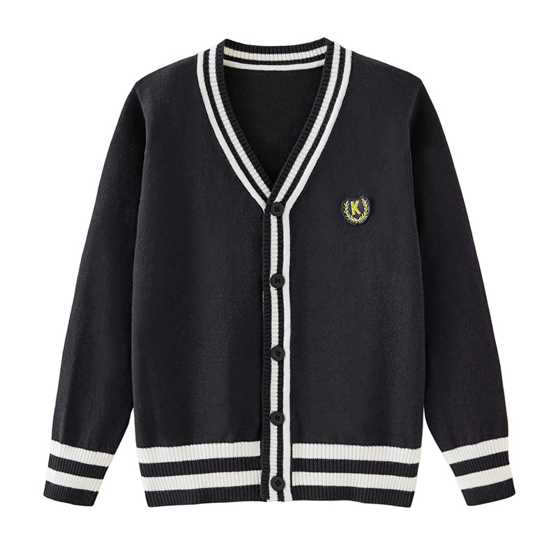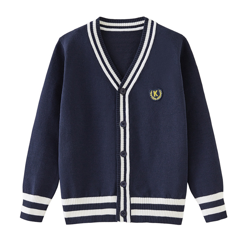 2025 새로운 학교 유니폼 대비 색상 소녀 스웨터 카디건 어린이 봄, 가을 재킷 중형 및 대형 어린이 니트 카디건 소년스토어 가기
