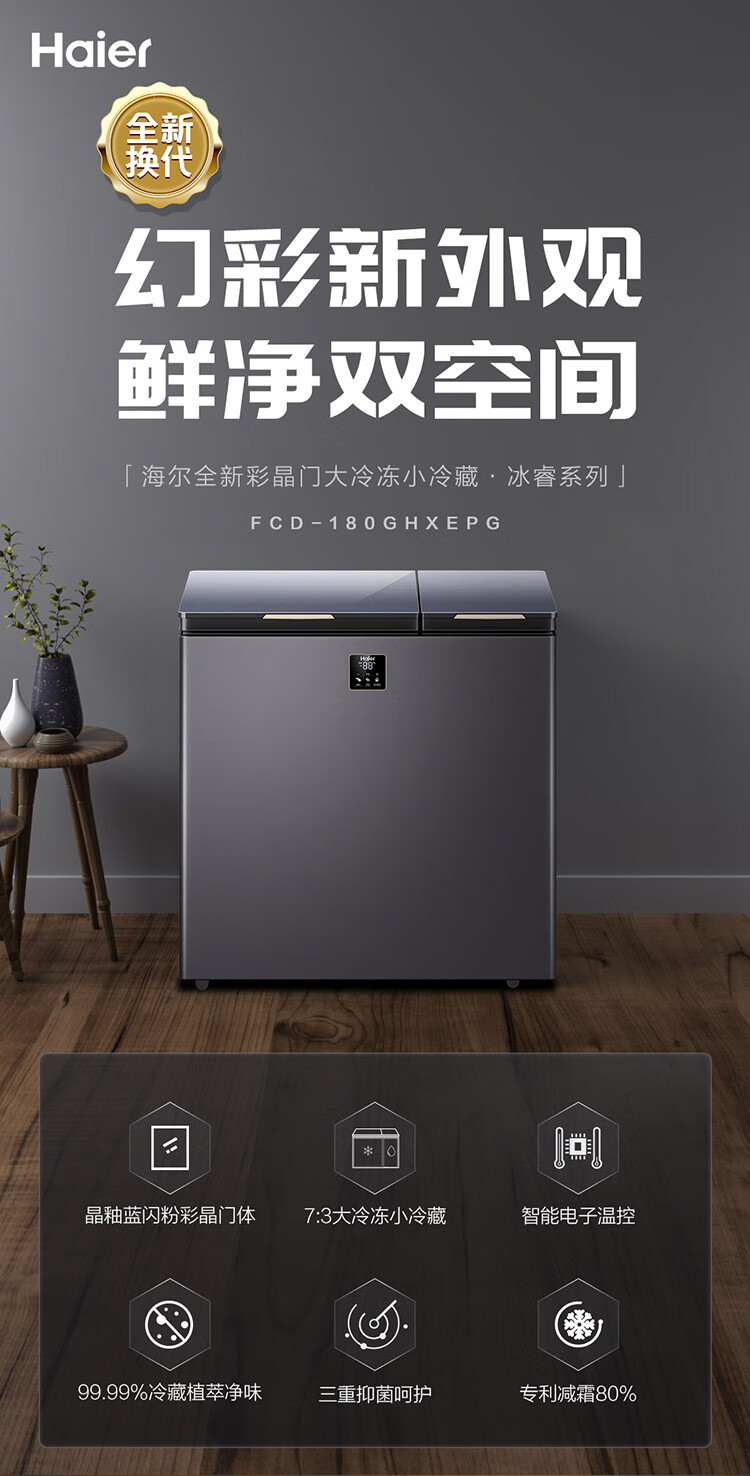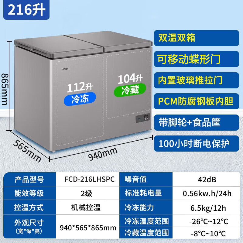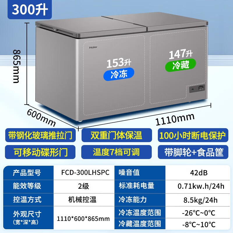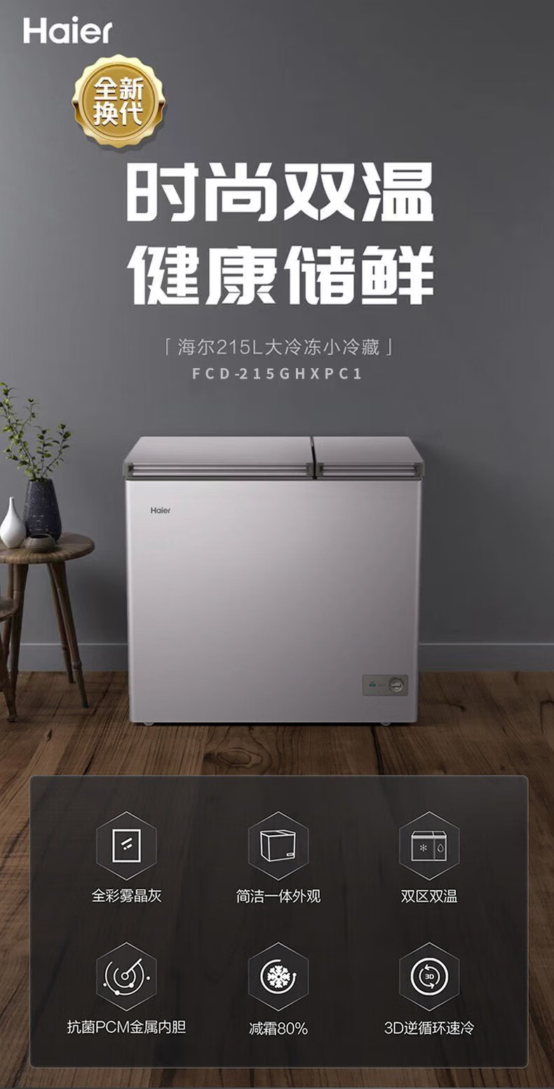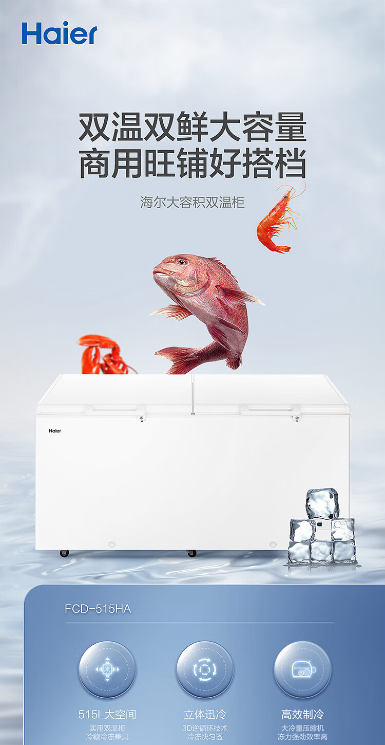 [이중 온도 캐비닛] Haier 상업용 냉동고 수평 냉동 냉동고 전국 공동 보호 수평 얼음