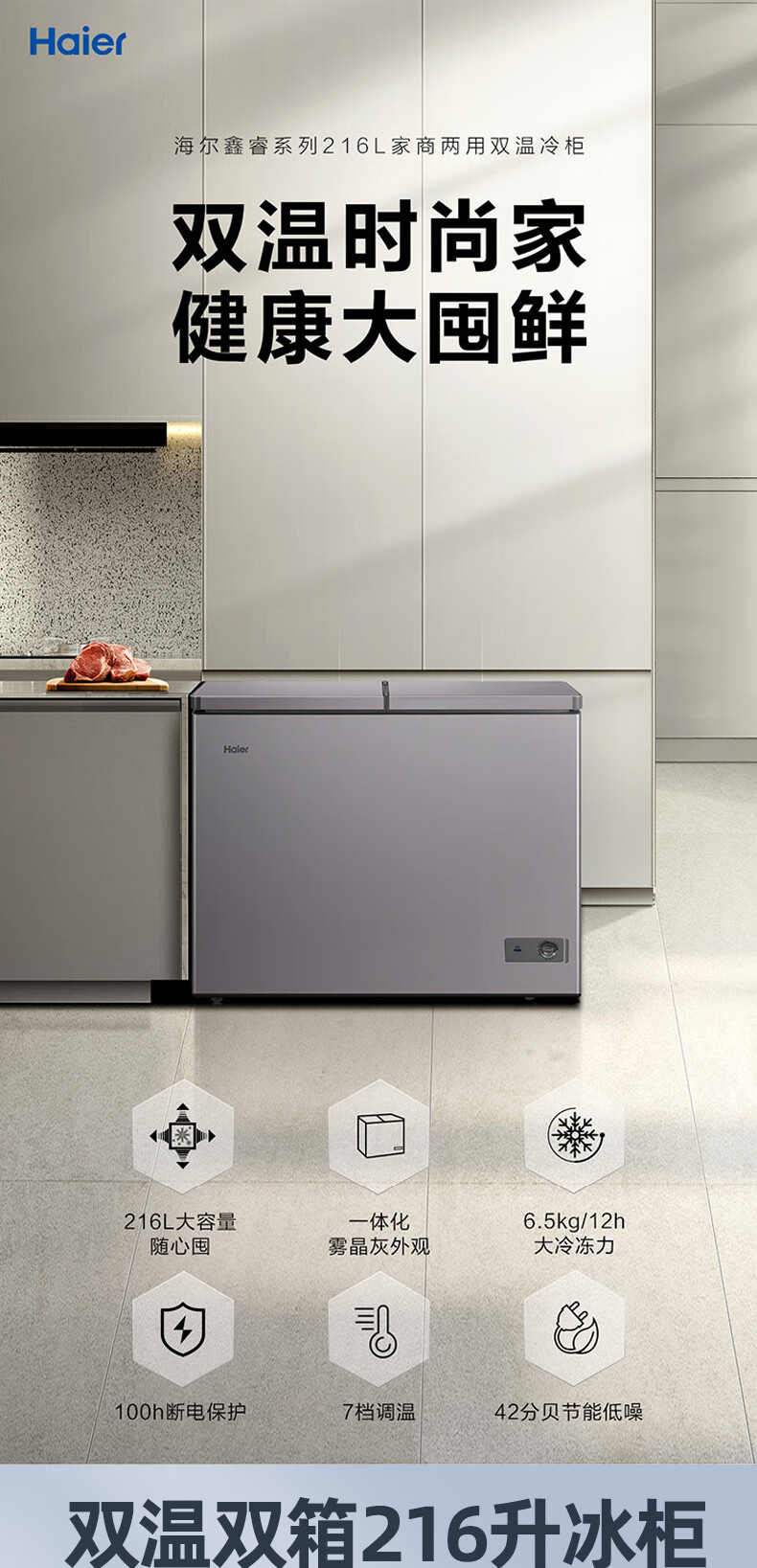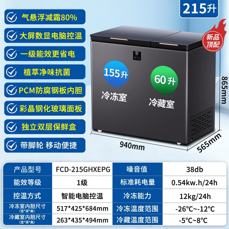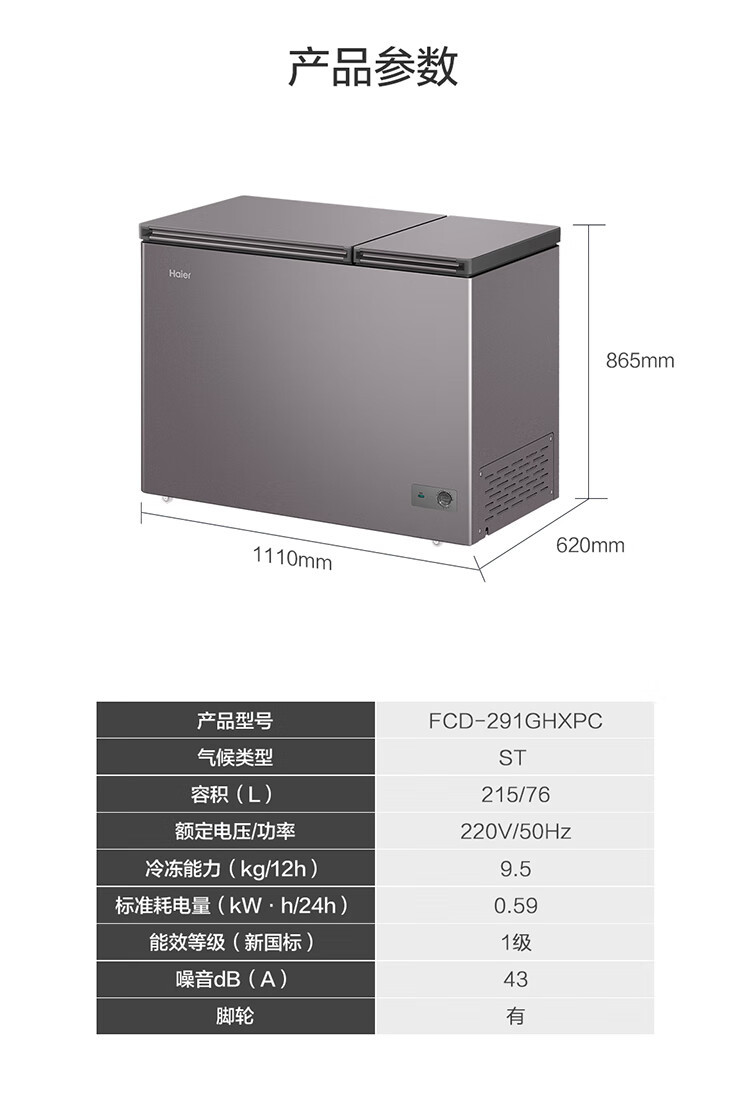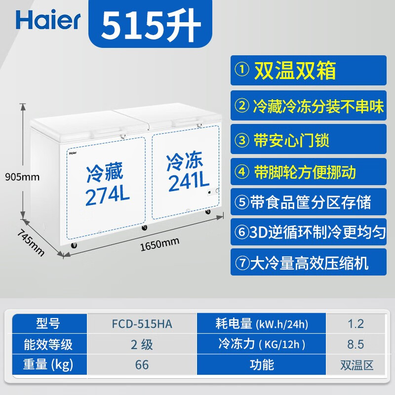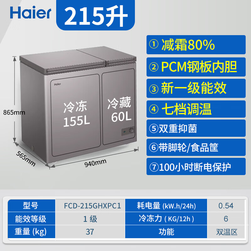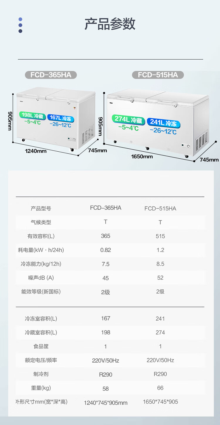 [이중 온도 캐비닛] Haier 상업용 냉동고 수평 냉동 냉동고 전국 공동 보호 수평 얼음