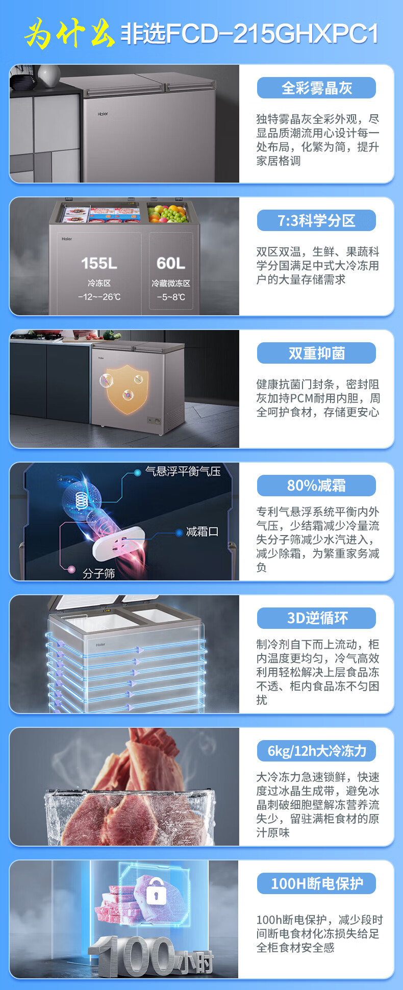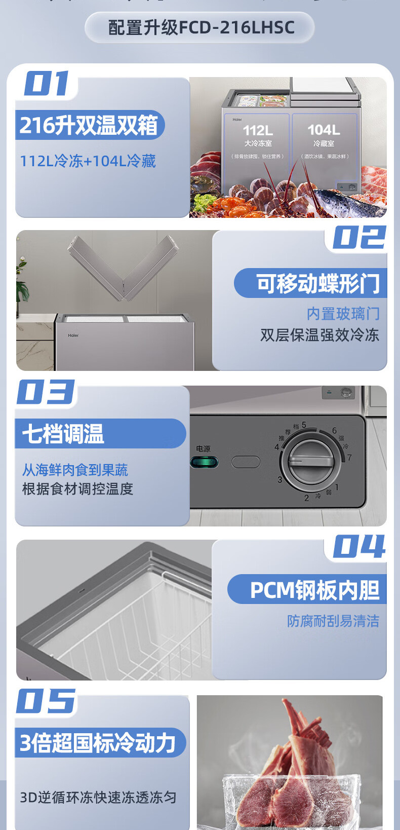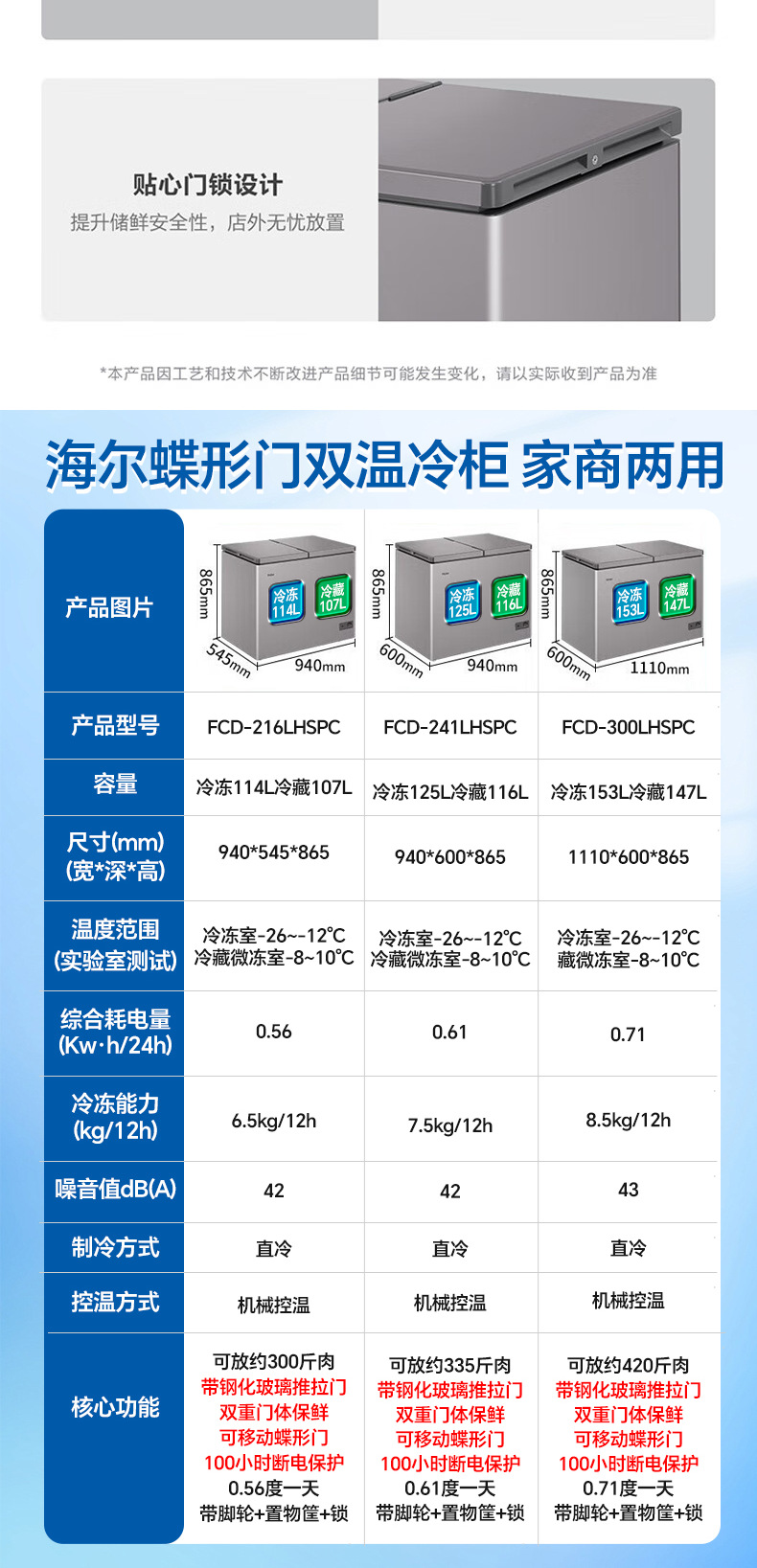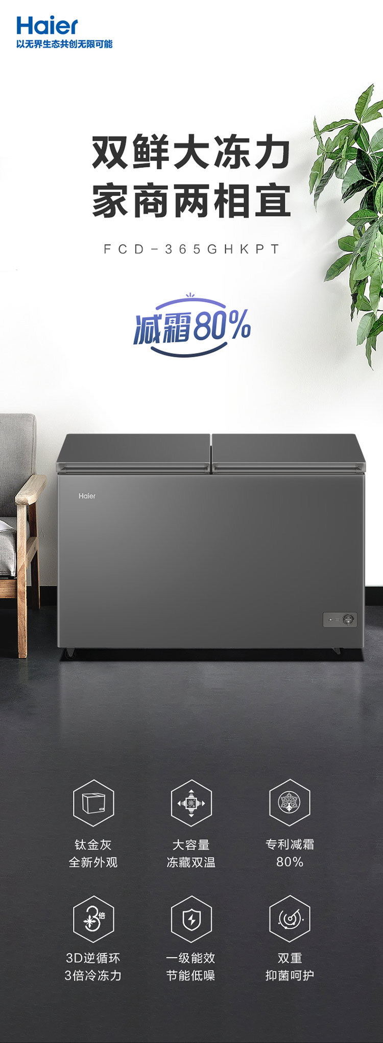 [이중 온도 캐비닛] Haier 상업용 냉동고 수평 냉동 냉동고 전국 공동 보호 수평 얼음
