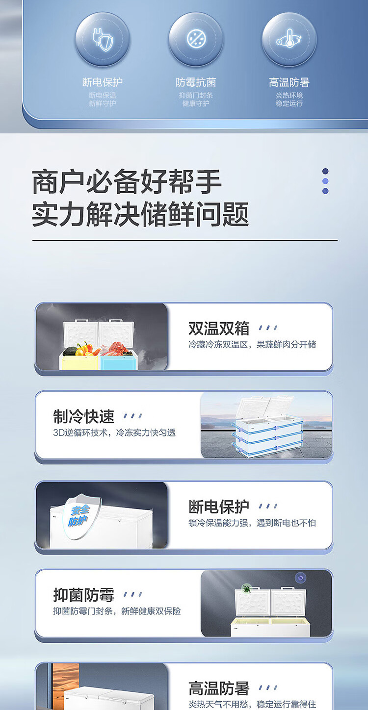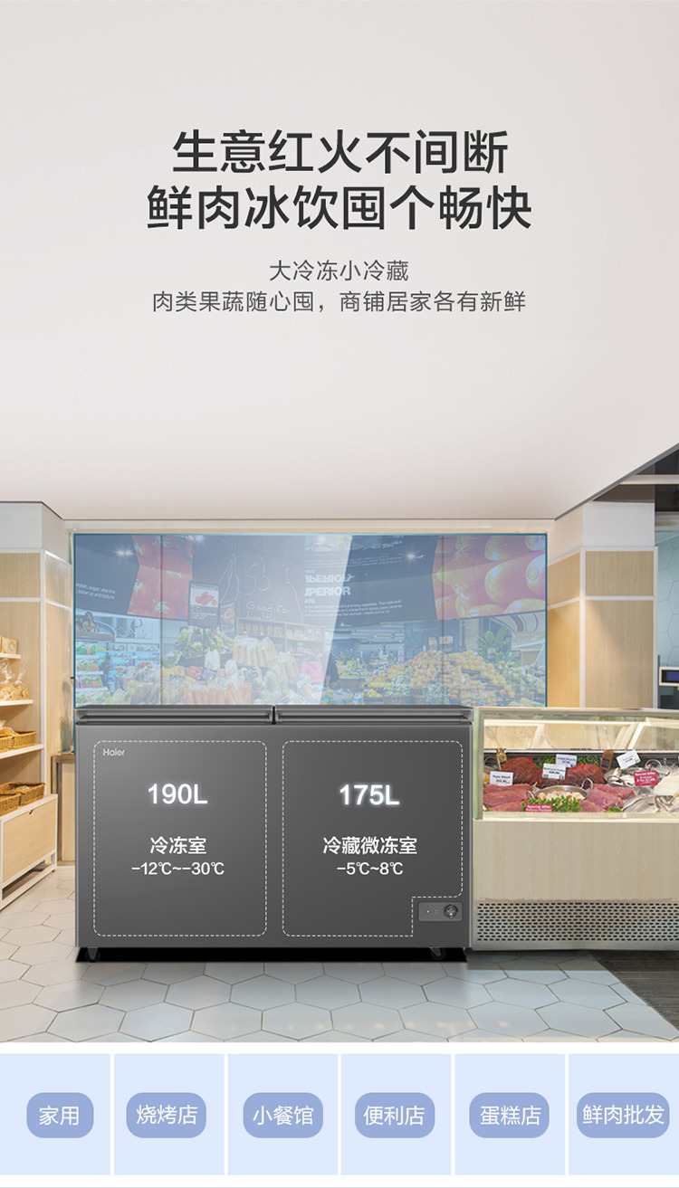 [이중 온도 캐비닛] Haier 상업용 냉동고 수평 냉동 냉동고 전국 공동 보호 수평 얼음스토어 가기