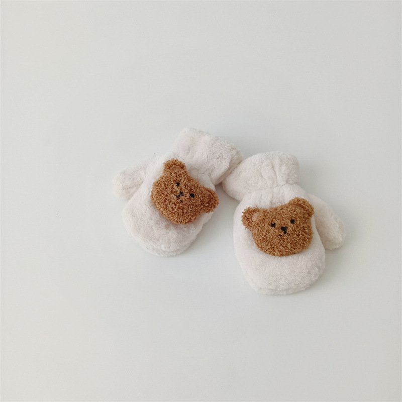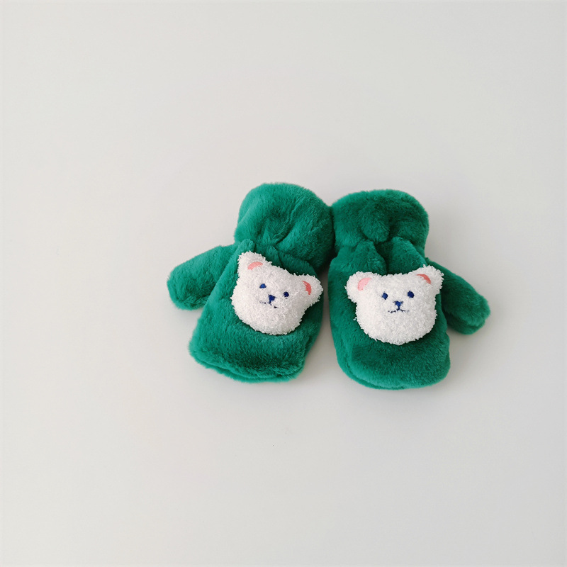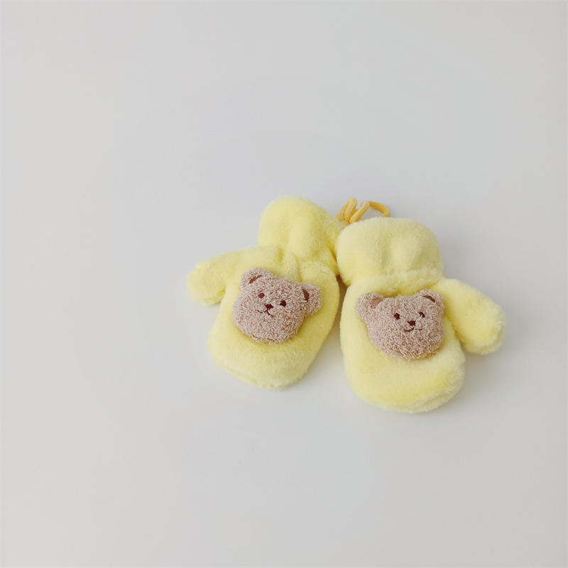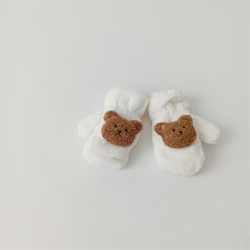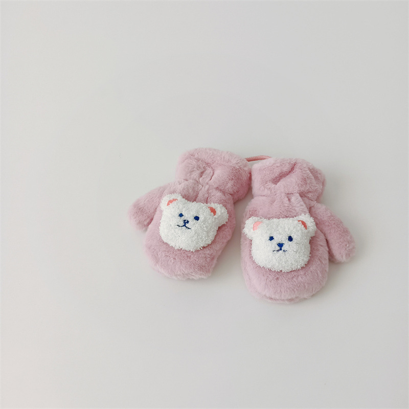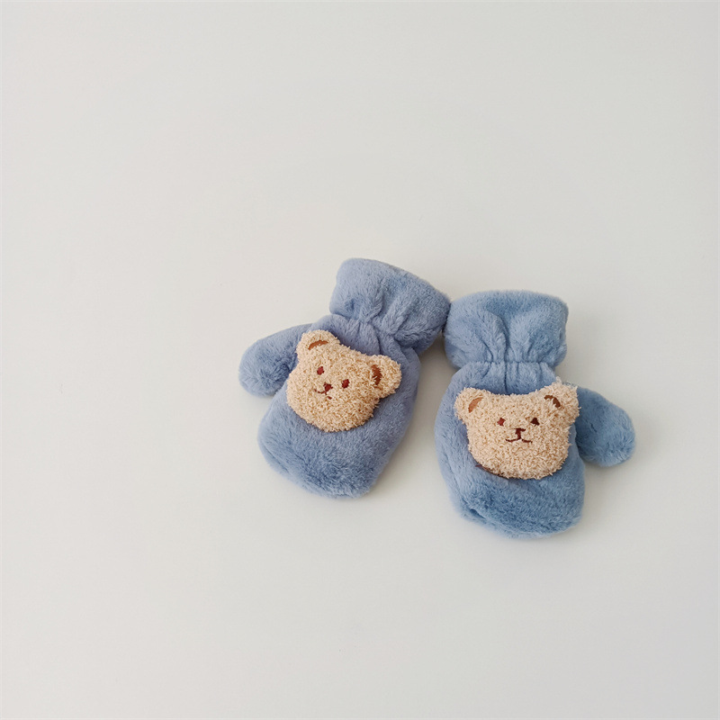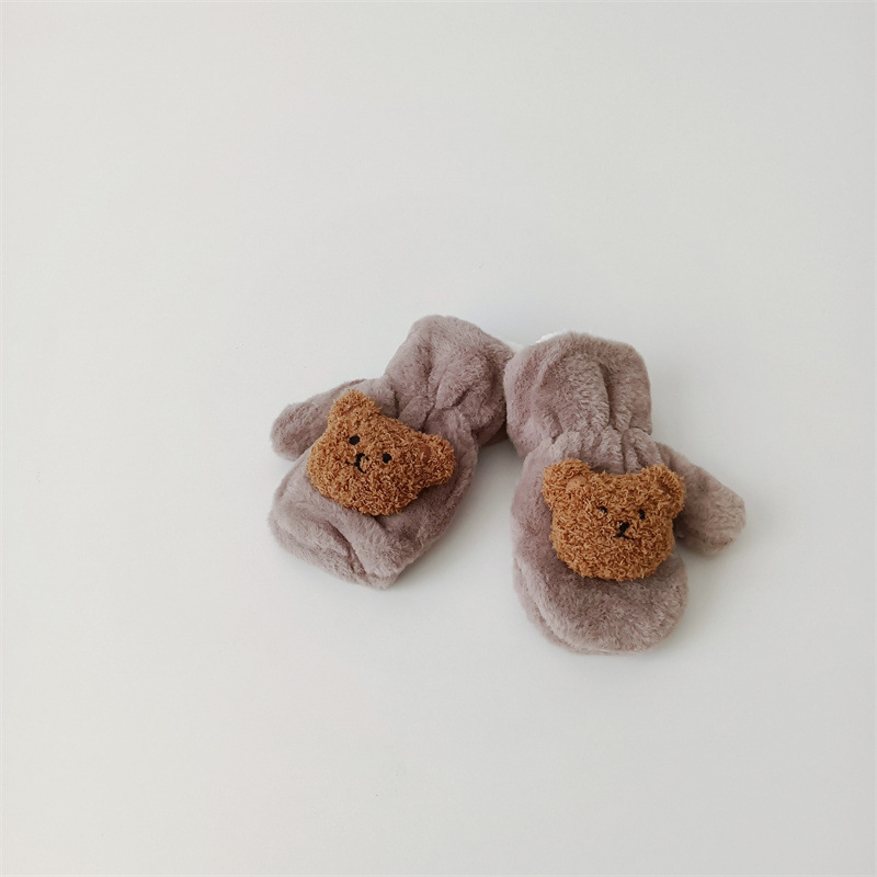 한국 스타일의 귀여운 봉제 곰 장갑 아기 야외 차가운 겨울 기모 따뜻한 만화 고삐 장갑스토어 가기