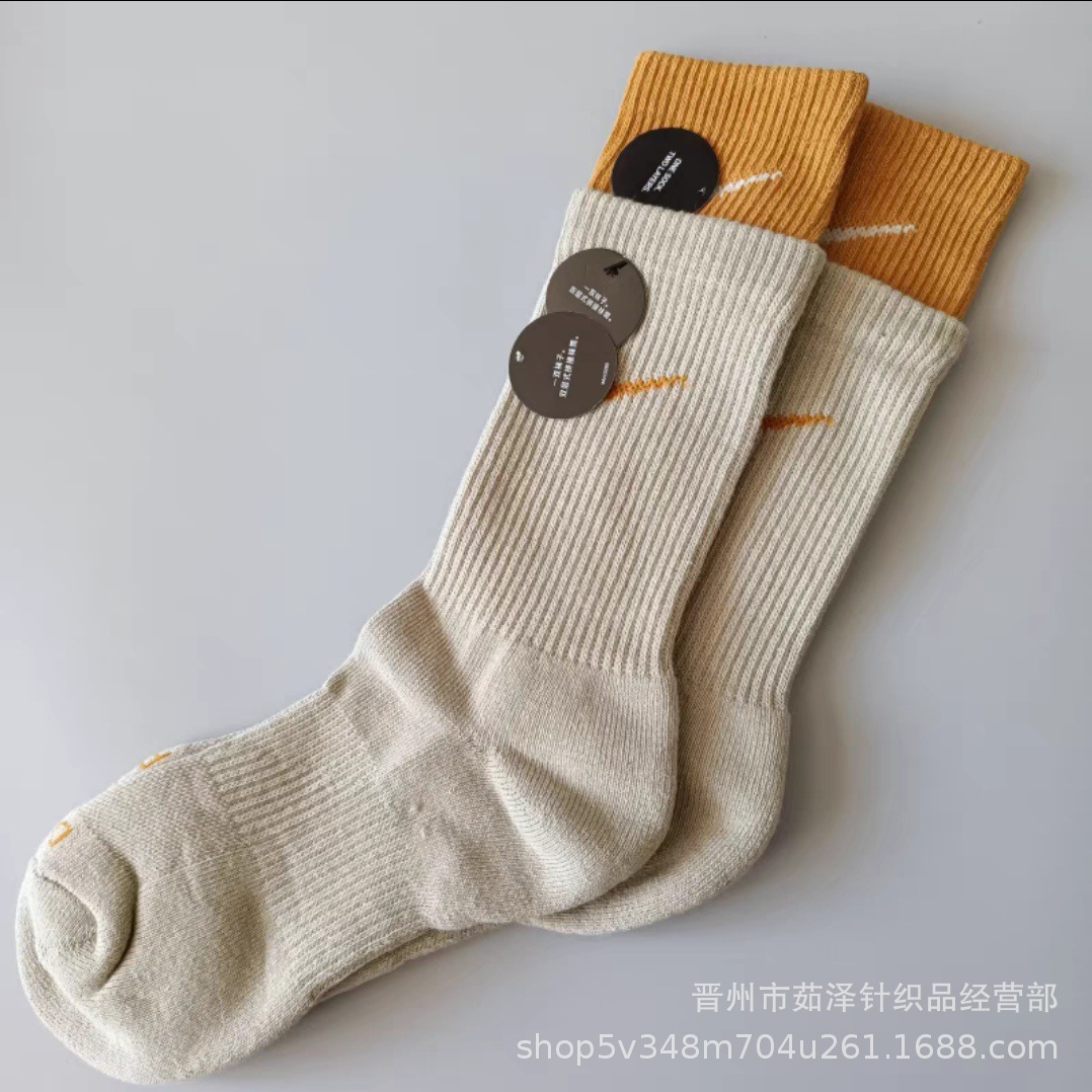 Suwan Neskett 양말 컬러 스티칭 남녀 커플 양말 긴 튜브 스포츠 타월 바닥 양말 도매스토어 가기