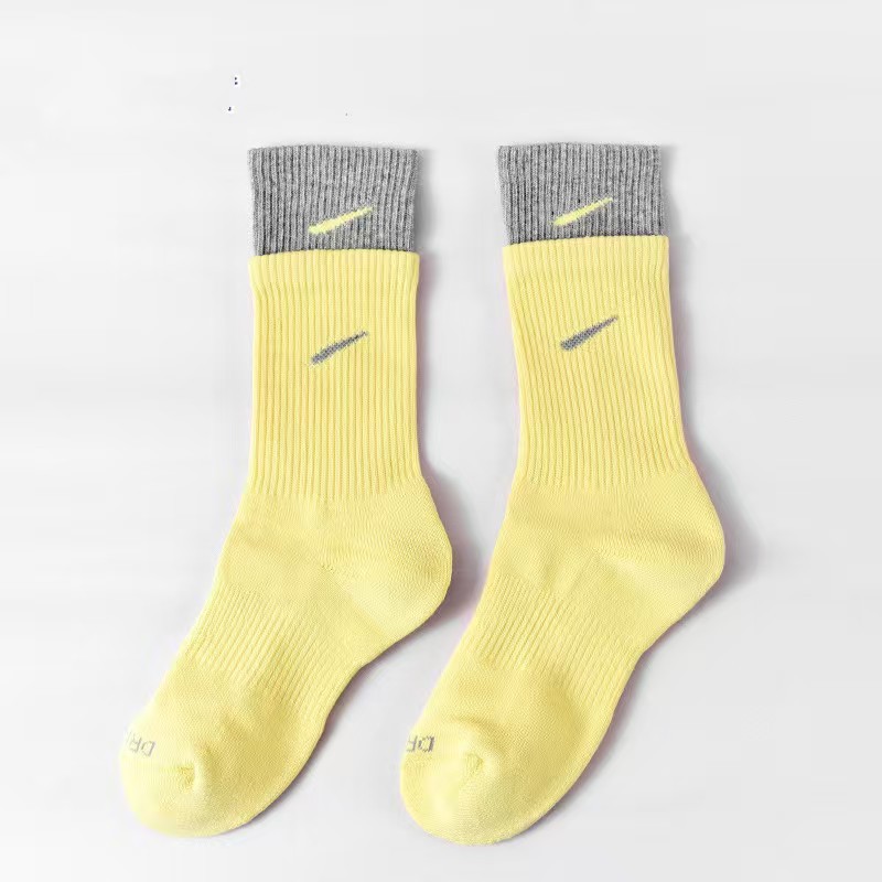 Suwan Neskett 양말 컬러 스티칭 남녀 커플 양말 긴 튜브 스포츠 타월 바닥 양말 도매