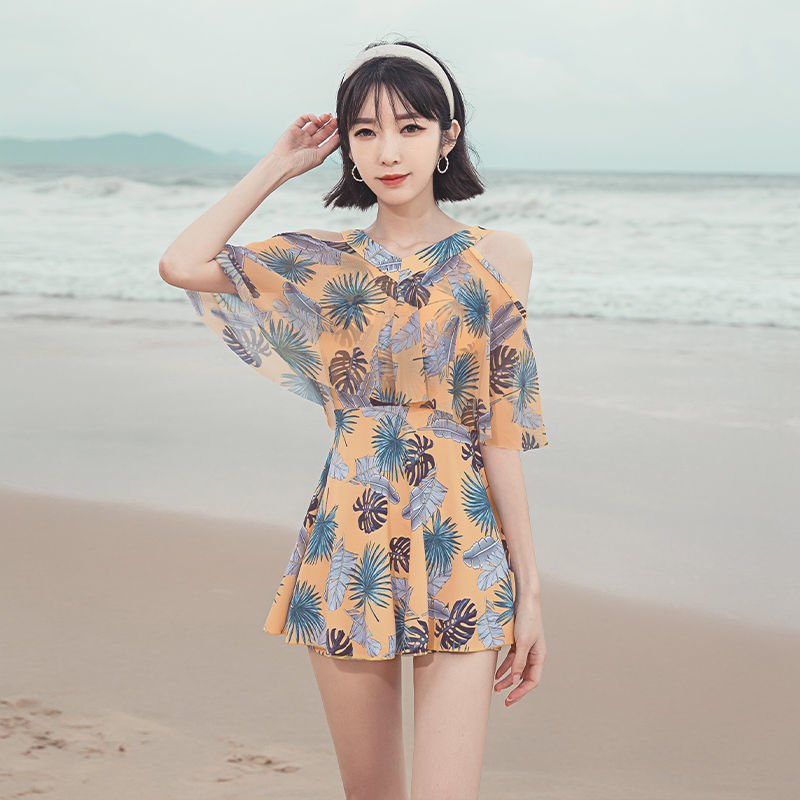 여성용 수영복 여름 신작 인기 원피스 스커트 스타일 배 커버 슬리밍 여성용 해변 휴가 프린트 보수적 인 수영복스토어 가기