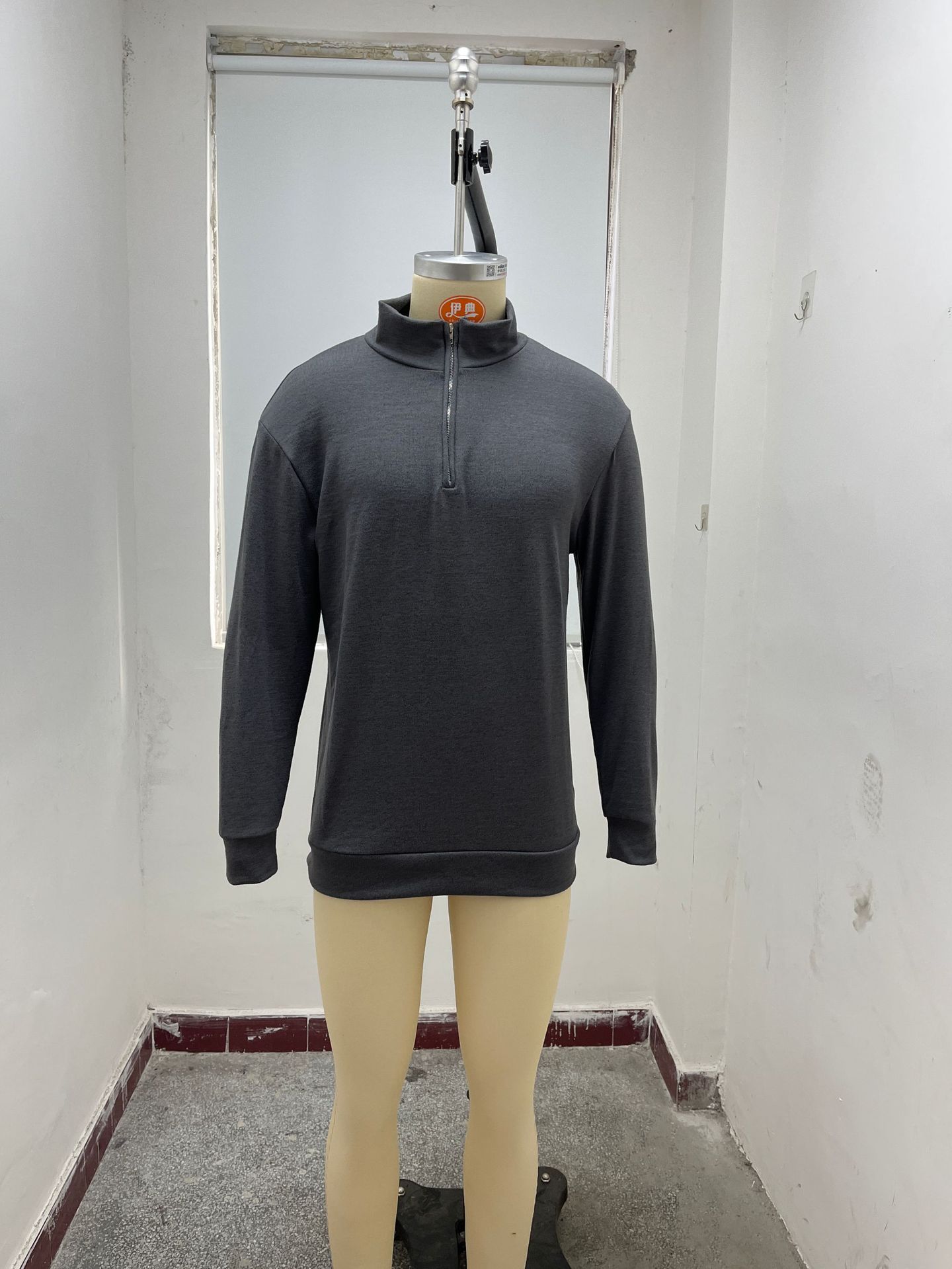 2023 Independent Station Amazon 신작 가을 긴팔 V 넥 울 벨벳 지퍼 남성 캐주얼 탑 폴로 셔츠