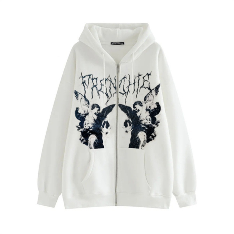 2022 새로운 유럽 및 미국 까마귀 스웨터 여성용 느슨한 스트리트 스포츠 지퍼 카디건 재킷 트렌디 헤어 담당자스토어 가기