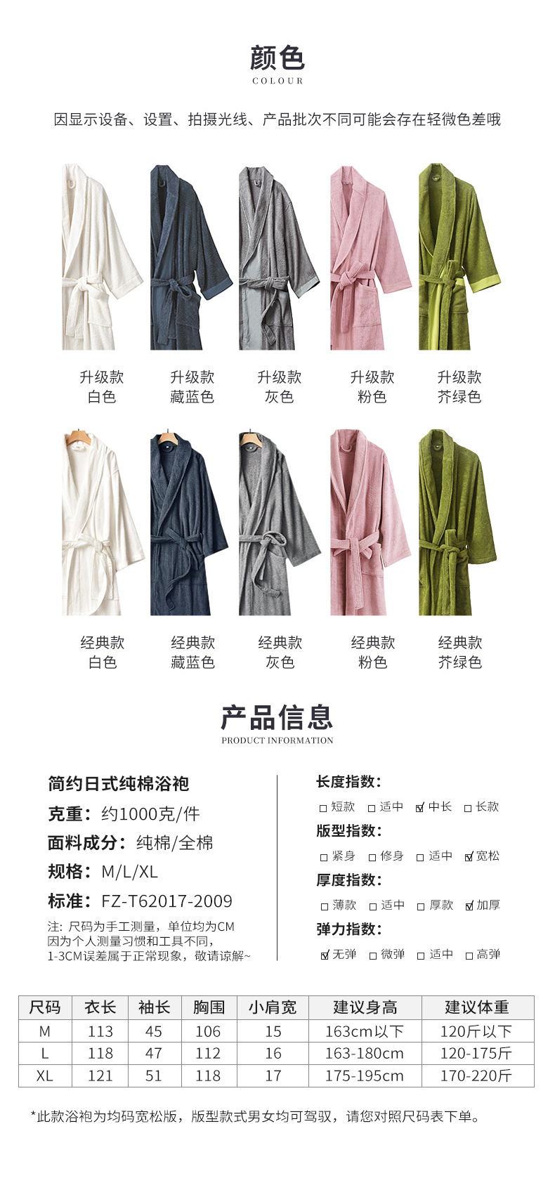 사계절용 성인용 순면 목욕 가운, 목욕복, 홈웨어, 수면 가운, 따뜻한 커플용 가정복, 흡수성 좋은 커플용 홈웨어