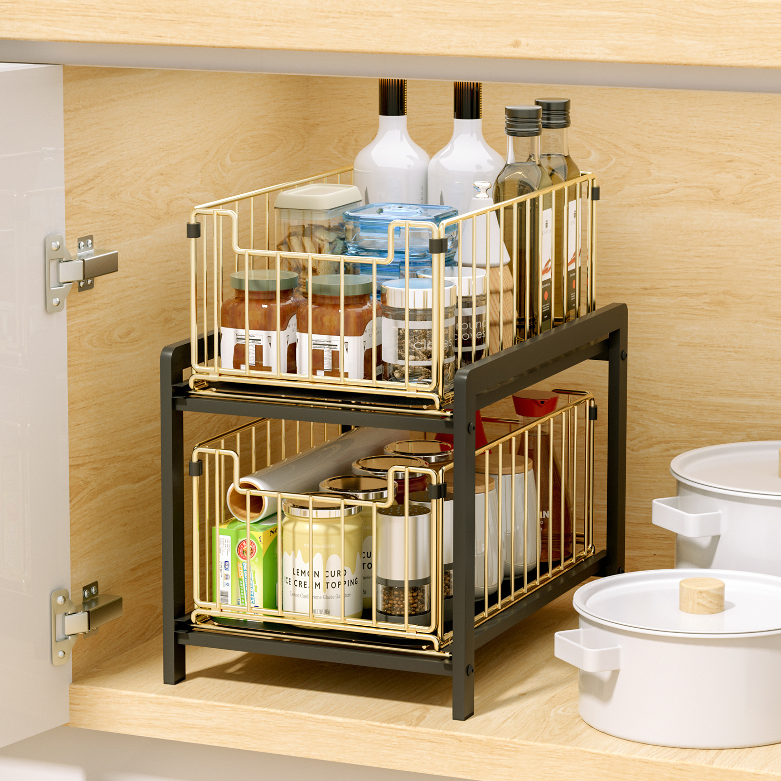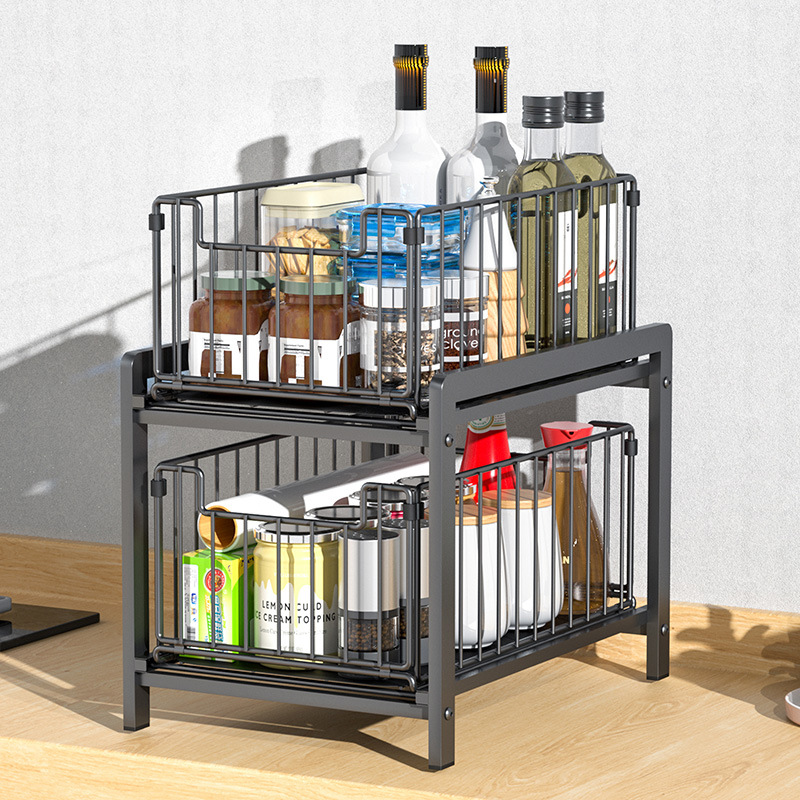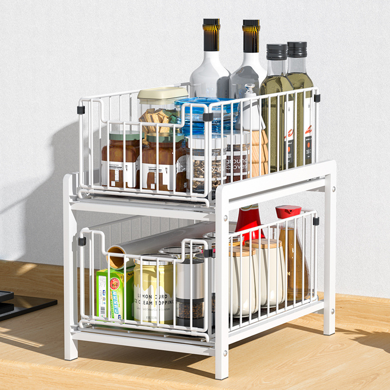 주방 언더 싱크 스토리지 랙 캐비닛 스토리지 랙 다층 이동식 풀 아웃 잡화 언더 싱크 스토리지 랙