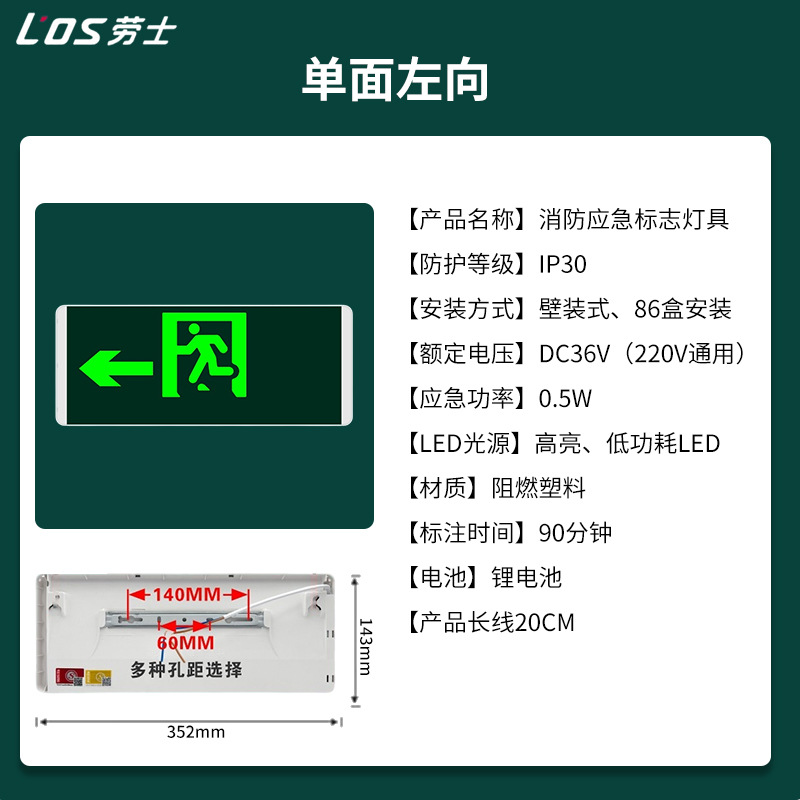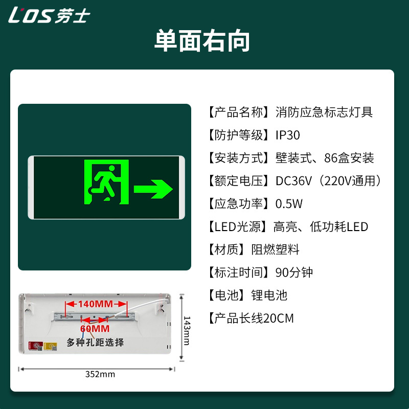 Laoshi 새로운 국가 표준 안전 출구 표시기 라이트 계단 통로 화재 비상 조명 led 대피 표지등스토어 가기