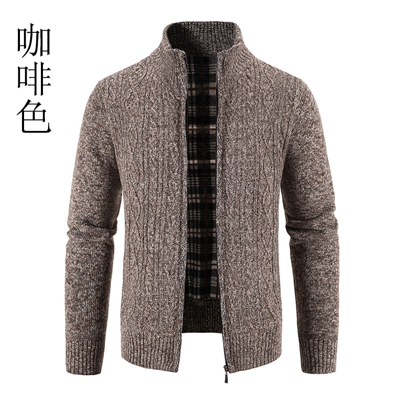 26년 신상 가을 겨울 남성용 플리스 스웨터 가디건, 대형 사이즈, 수출용, 스탠드 칼라, 패셔너블한 아우터 재킷, 남성 상의스토어 가기
