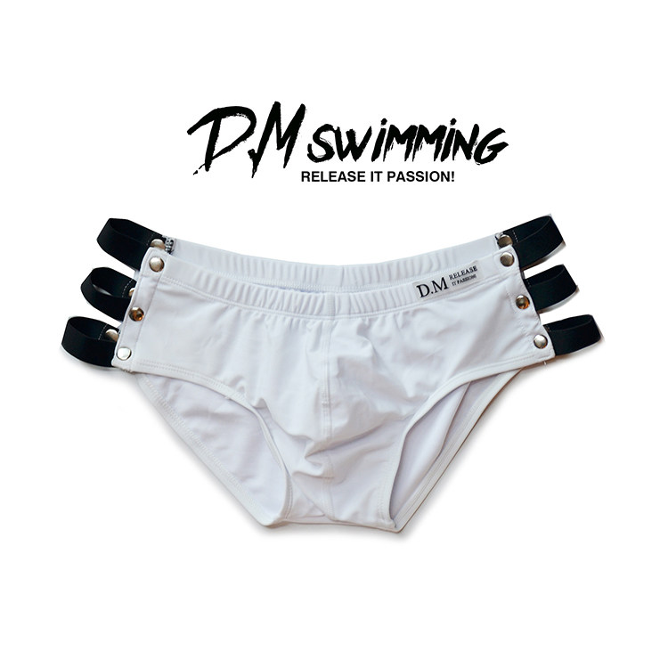 D.M 남자 수영 트렁크 낮은 허리 섹시한 단색 흑백 복서 반바지 빈 성격 유행 스포츠스토어 가기