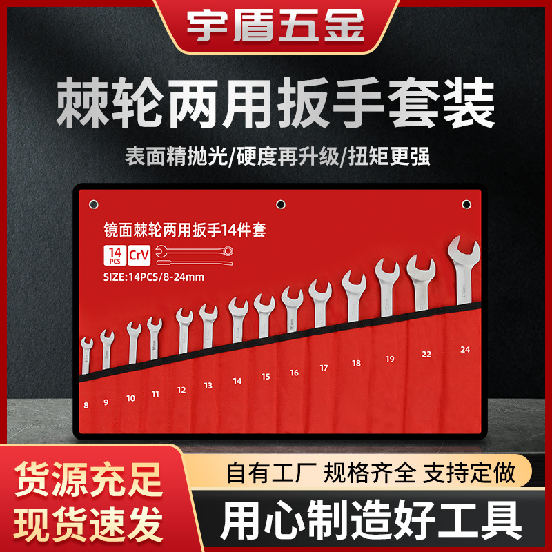 제조업체 도매 이중 목적 렌치, 고탄소강, 거울면 크롬 도금 래칫 렌치, 7세트, 12피스 세트, 14피스 세트, 노동력 절약형 자동차용스토어 가기