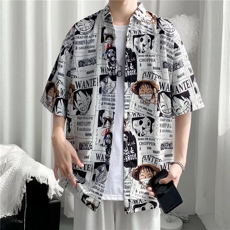 일본 스타일 복고풍 만화 반팔 셔츠 남자의 홍콩 스타일 셔츠 낙서 하와이 비치 루피안 잘 생긴 반팔 유행스토어 가기