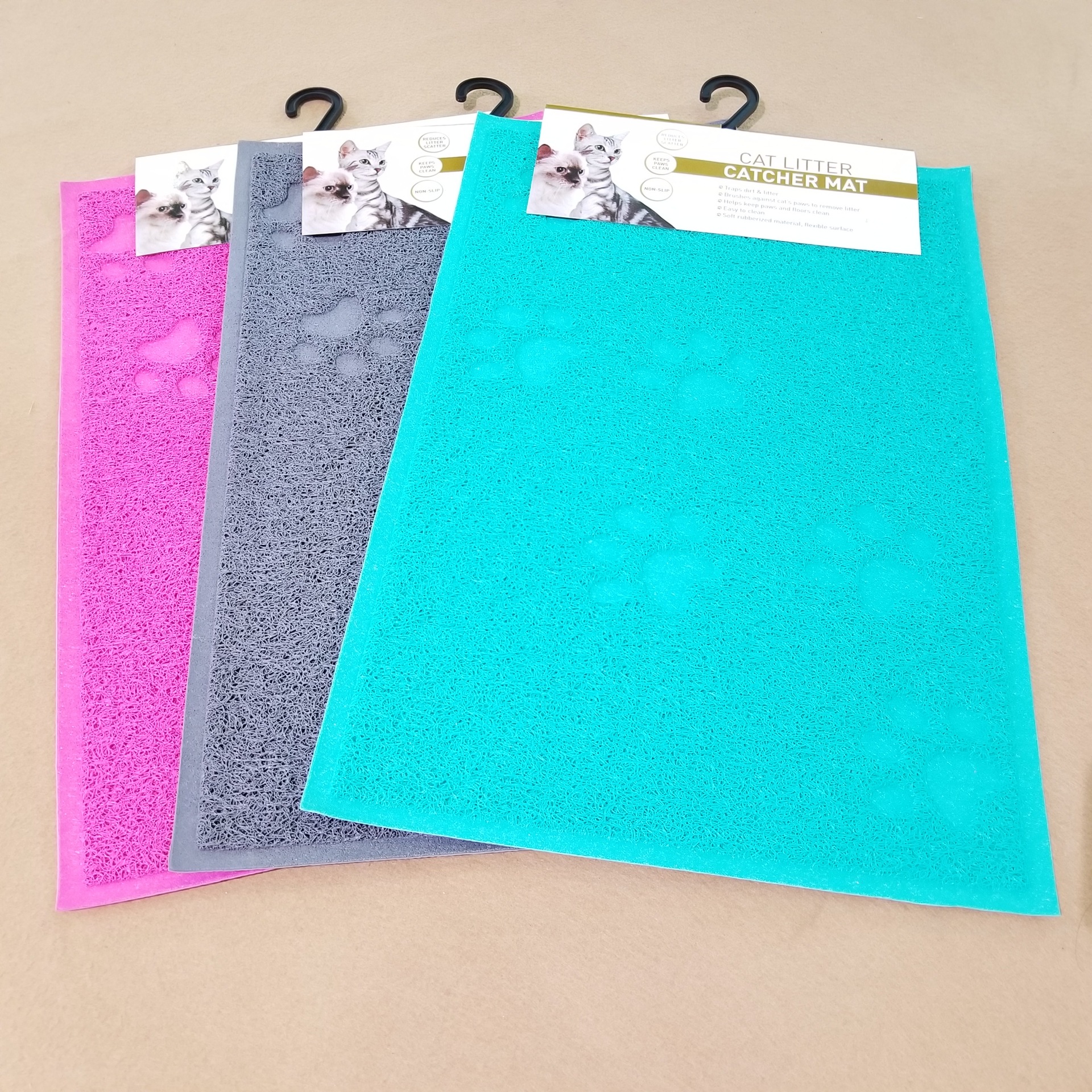 我厂专业生产pvc喷丝地垫,宠物垫等,产品畅销欧美等国家和地区。可以常做的形状有半圆形,长方形等,各种形状,尺寸,颜色等均可来样定做。产品可以满足欧洲市场需求,有BSCI证书。