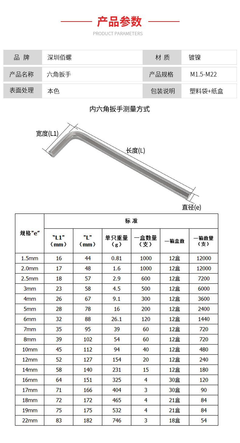 니켈 도금 알렌 렌치 미터법 플랫 헤드 렌치 육각 7 자형 아연 도금 육각 L자형 렌치 M1.5-M22스토어 가기