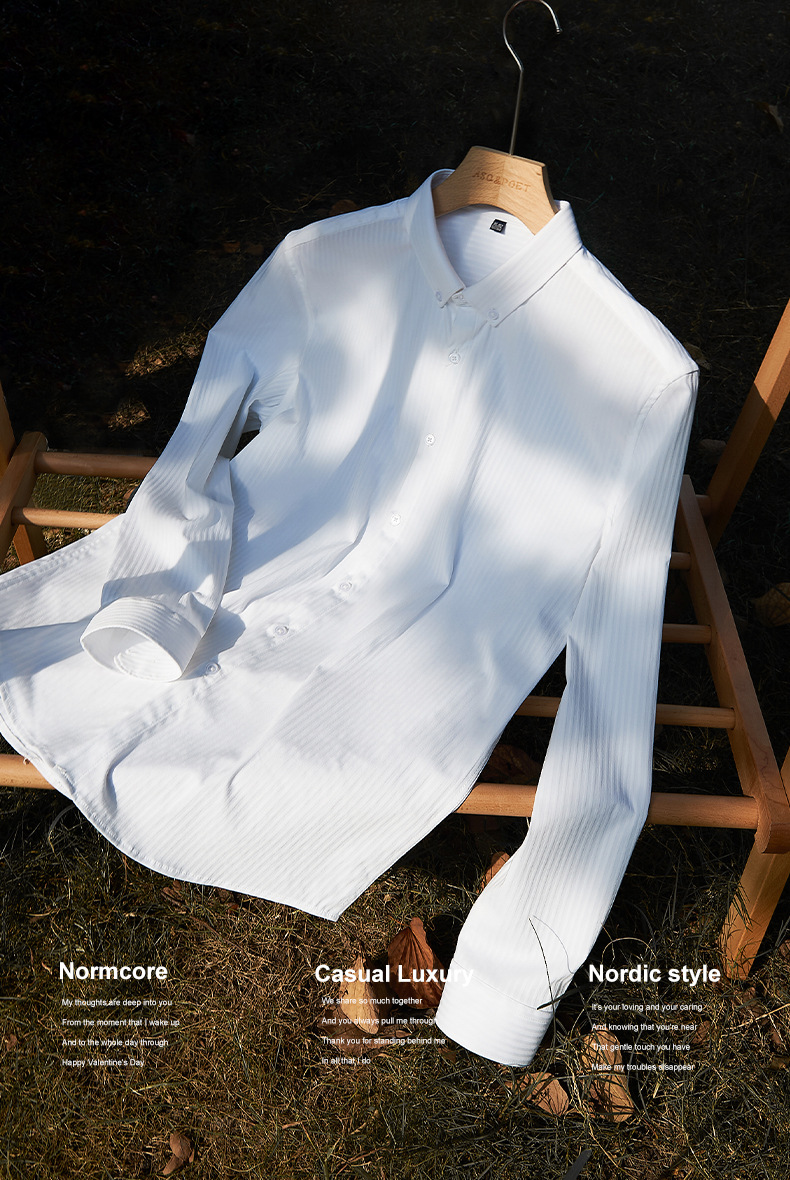 화이트 셔츠 남성 긴팔 비즈니스 정장 고급스러운 남성 슬림핏 고급 정장과 함께 코디하는 캐주얼 셔츠 맞춤 제작스토어 가기