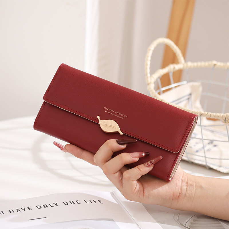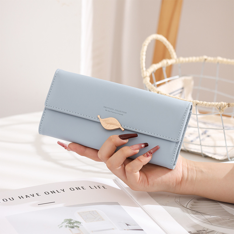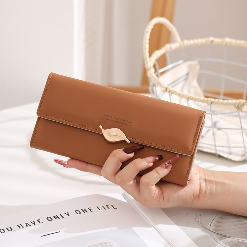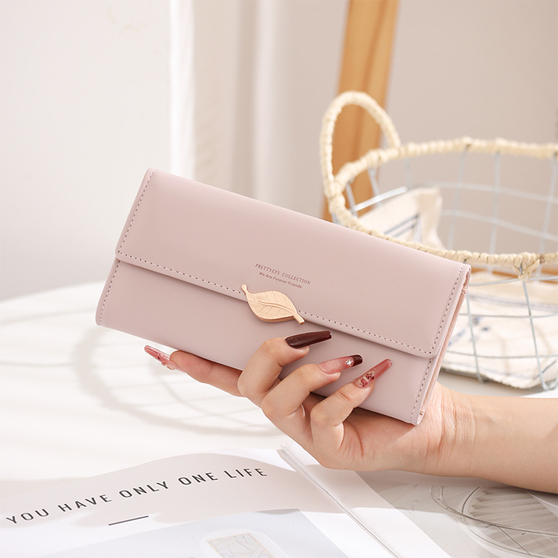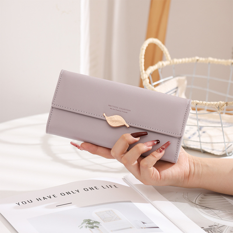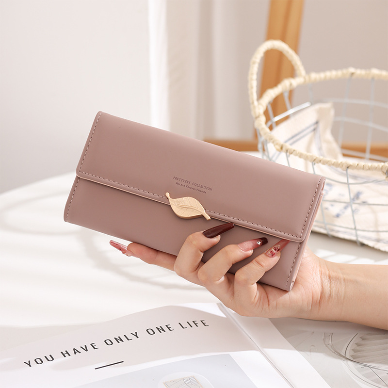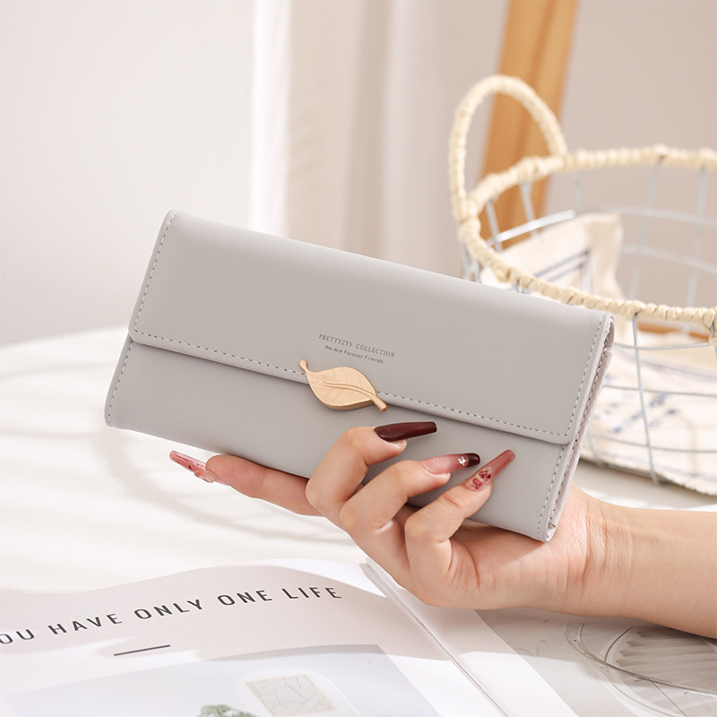 국경 간 대외 무역 지갑 여성용 긴 일본과 한국식 PU 가죽 신선한 잎 버클 심플 올 매치 여성용 클러치 카드 백스토어 가기