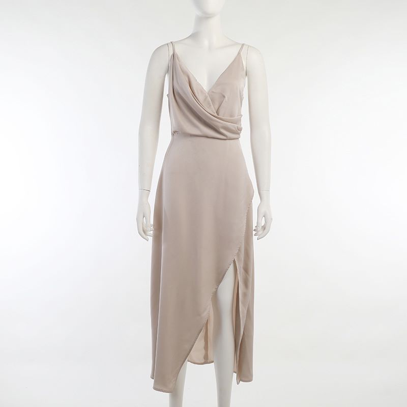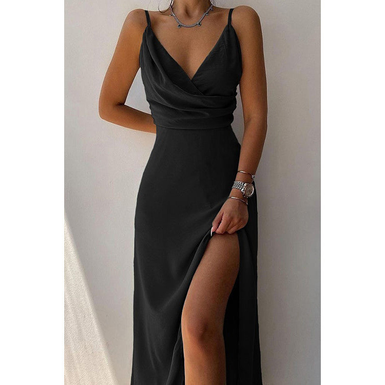 아마존 유럽과 미국 2022 여름 새로운 섹시한 V 넥 스트랩 분할 패션 슬림 원피스 대외 무역 여성 의류