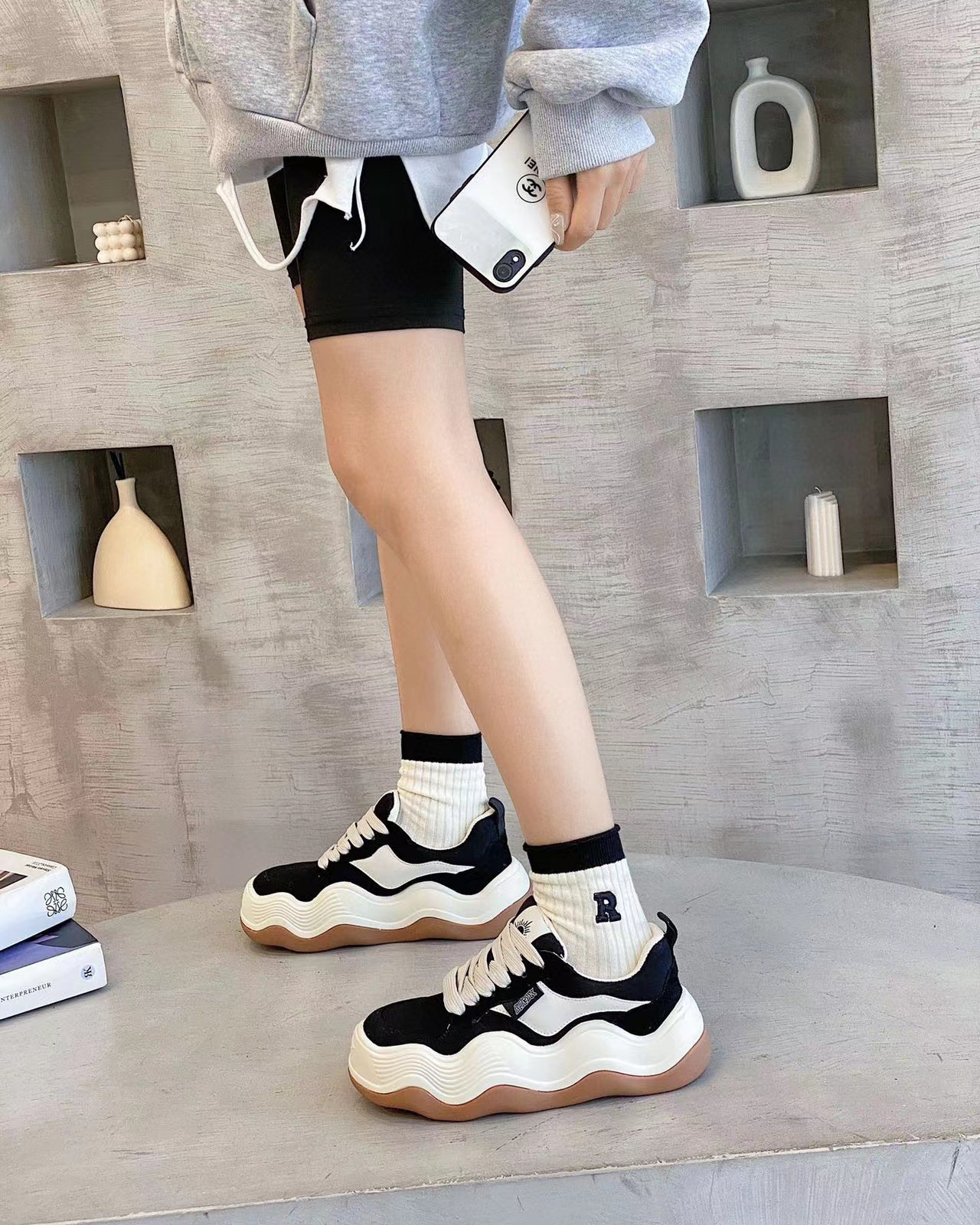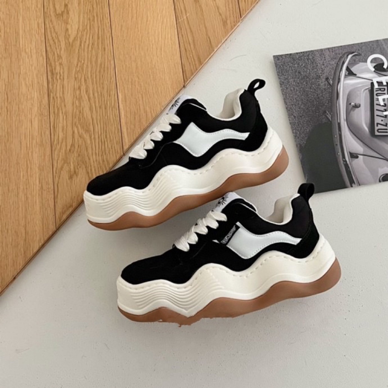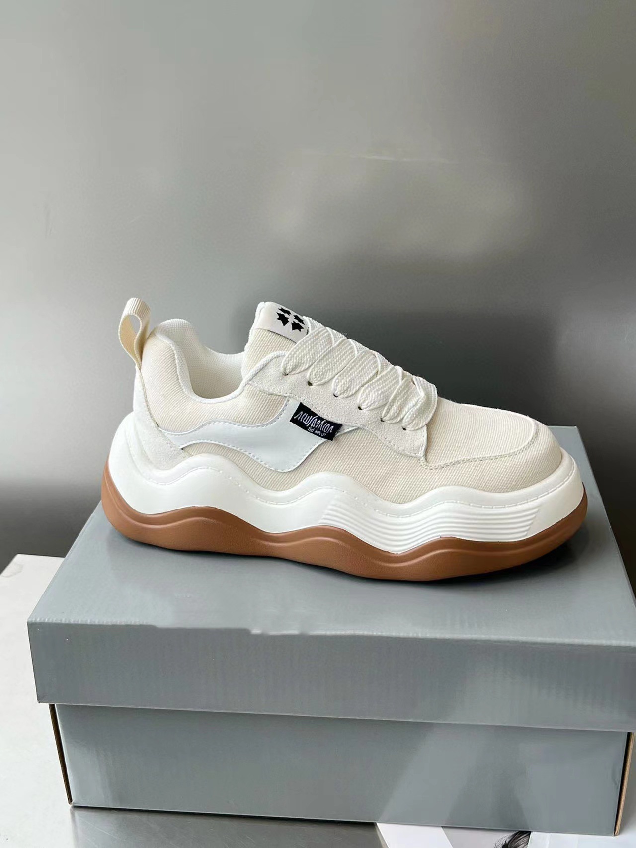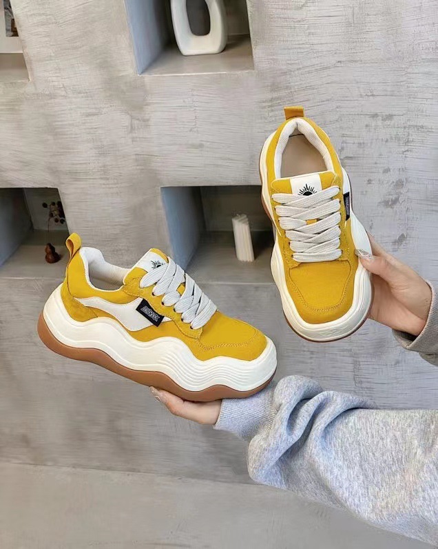 여성용 2022 New Tanjian 빅 웨이브 라운드 발가락 빵 캐주얼 스포츠 캔버스 신발