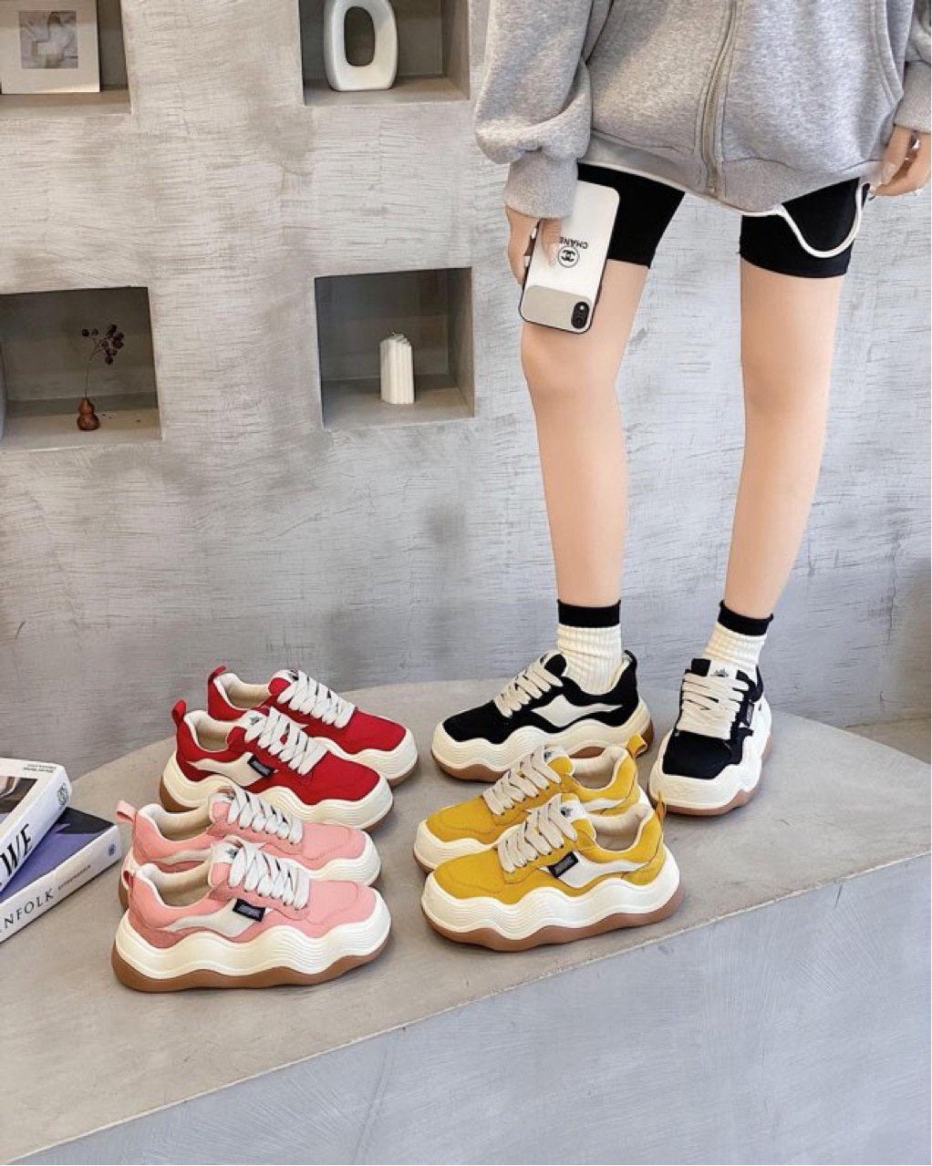 여성용 2022 New Tanjian 빅 웨이브 라운드 발가락 빵 캐주얼 스포츠 캔버스 신발스토어 가기