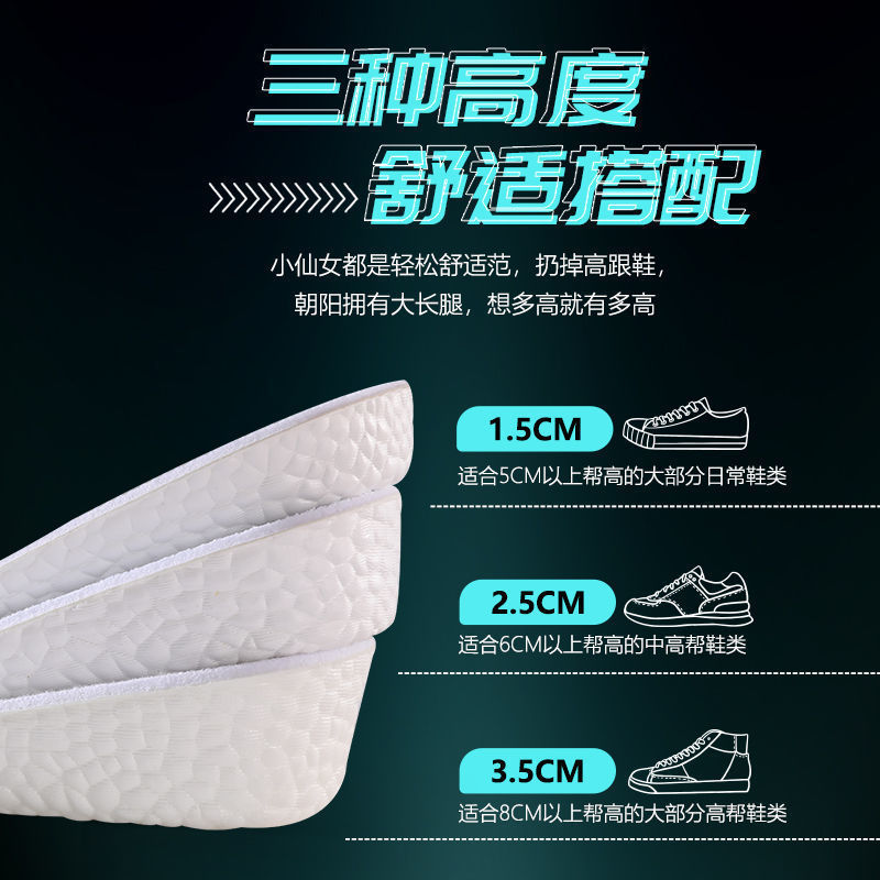 남성과 여성을 위한 부스트 팝콘 신장 증가 깔창, 전체 손바닥, 비 탈취제, 땀 흡수, 보이지 않는 내부 신장 증가 깔창 도매스토어 가기