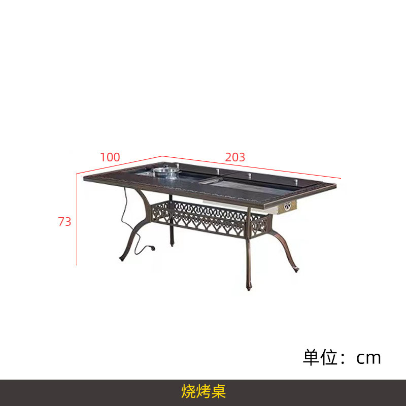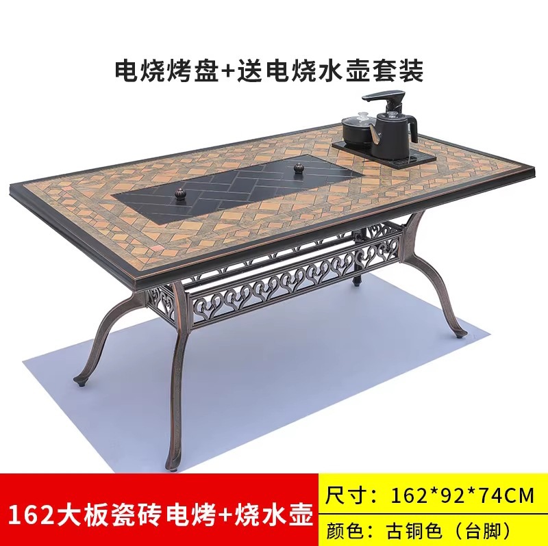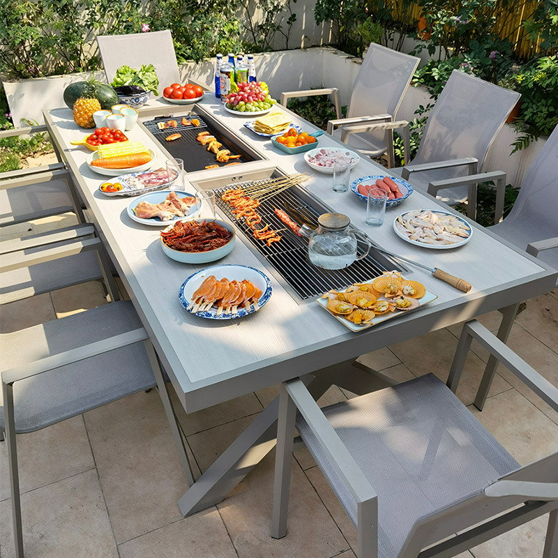 야외 안뜰 캐스트 알루미늄 테이블과 의자 정원 호텔 식당 의자 야외 홈 바베큐 테이블 인덕션 쿠커 스퀘어 테이블 냄비 테이블