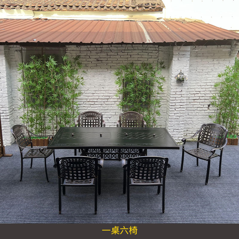 야외 안뜰 캐스트 알루미늄 테이블과 의자 정원 호텔 식당 의자 야외 홈 바베큐 테이블 인덕션 쿠커 스퀘어 테이블 냄비 테이블스토어 가기