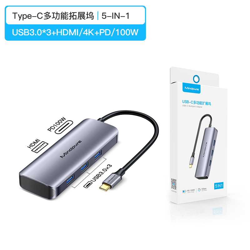 • 5-in-1 USB3.0 * 3 + HDMI + PD HU007