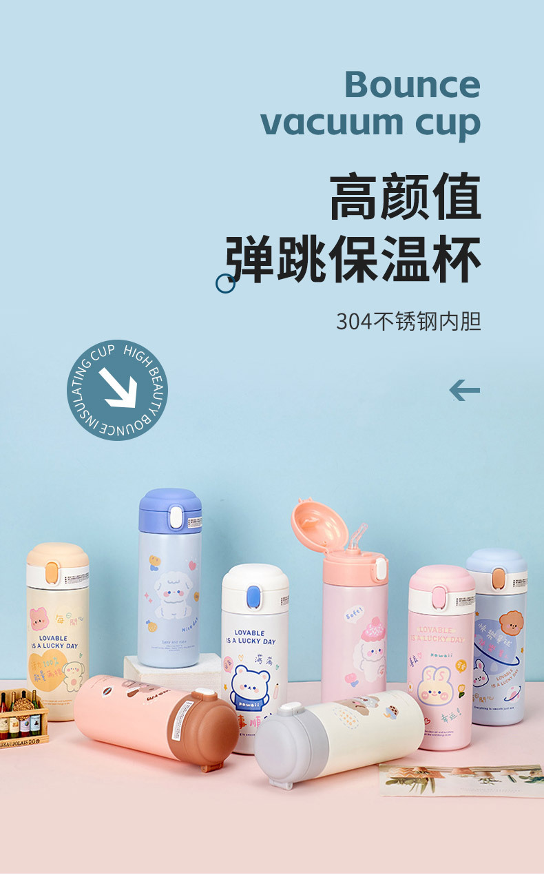높은 색상 값 304 스테인레스 스틸 보온병 컵 소녀 만화 어린이 바운스 컵 미니 완두콩 컵 선물 도매스토어 가기
