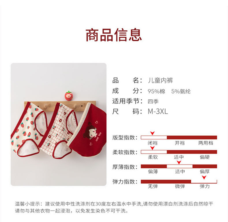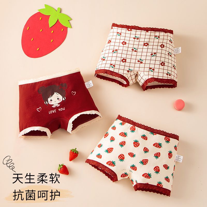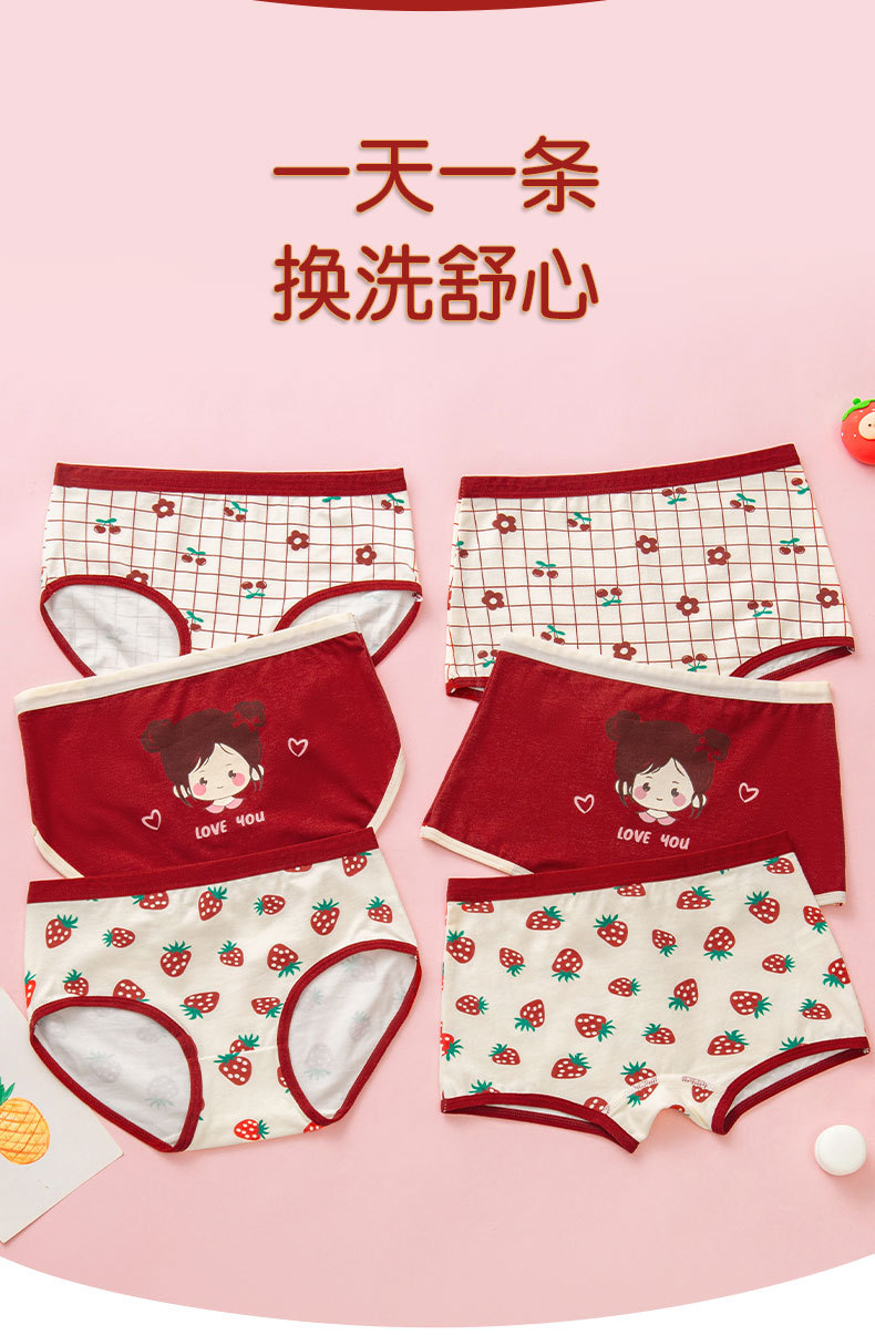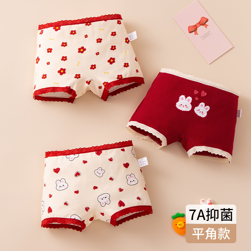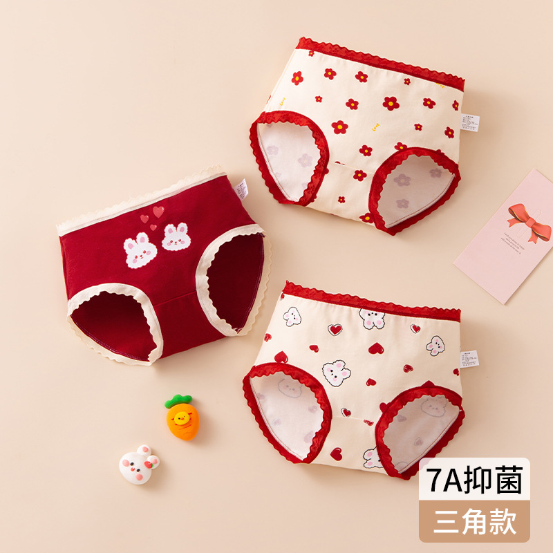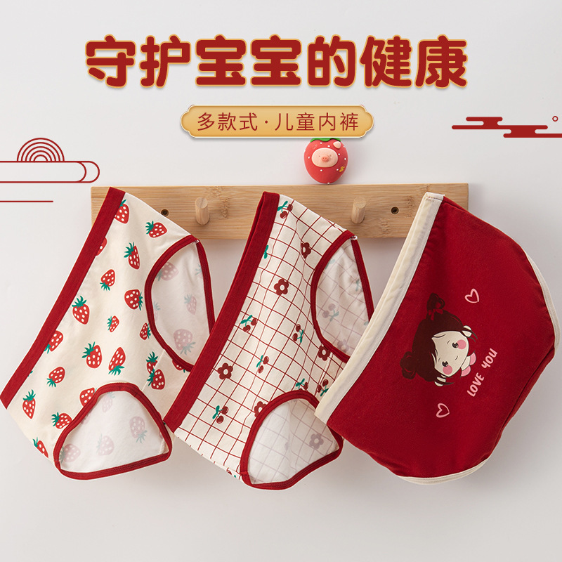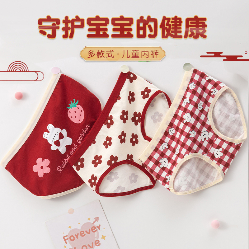 여아 순면 속옷 가을 겨울 어린이 생년월일 빨간색 중대형 아동용 팬티 순면 가랑이스토어 가기