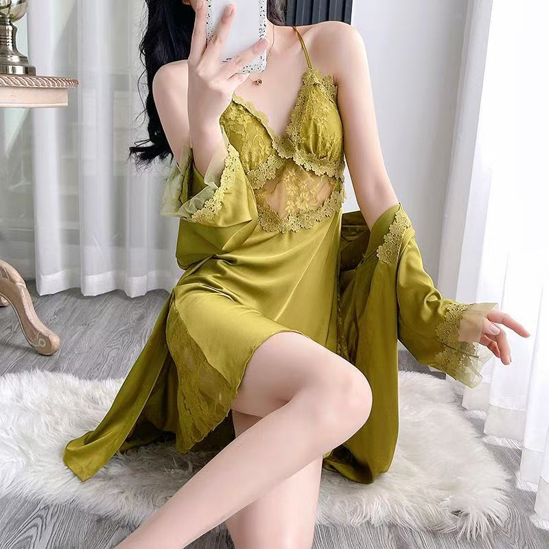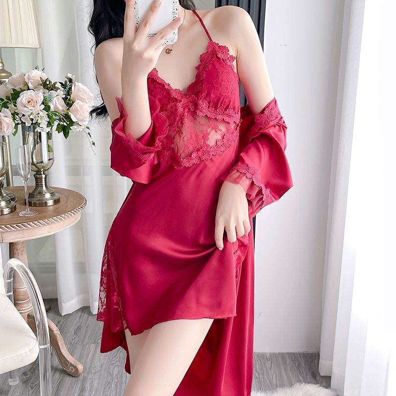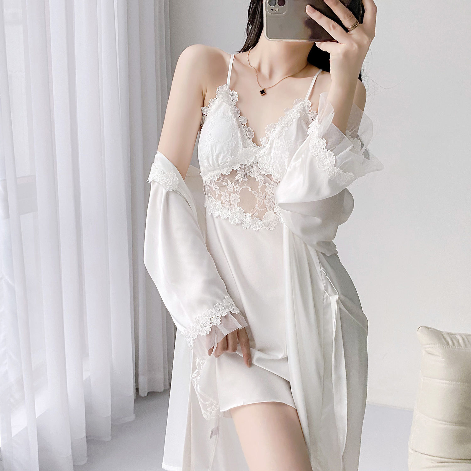 섹시한 여성 잠옷 봄, 여름, 가을 실크 아름다운 등 잠옷 레이스 중공 레이스 유방 패드 서스펜더 잠옷 홈웨어스토어 가기