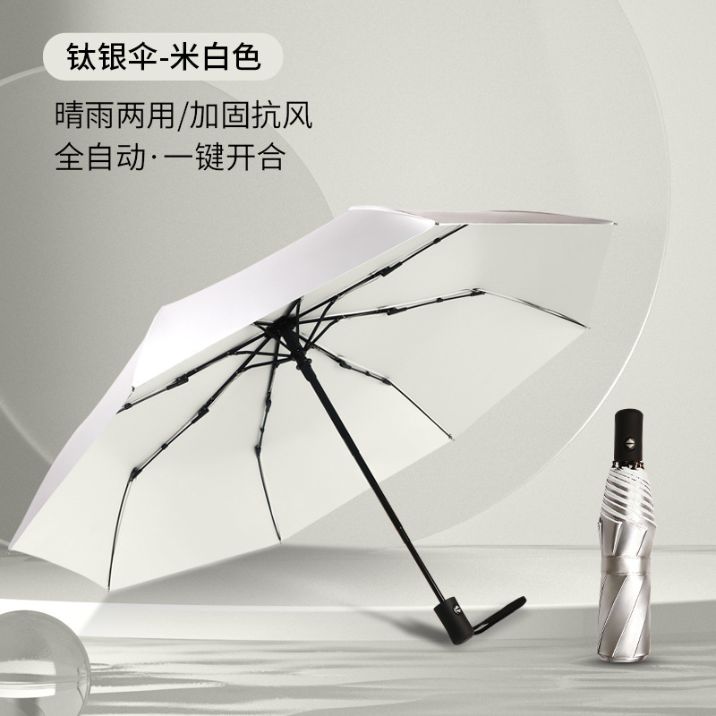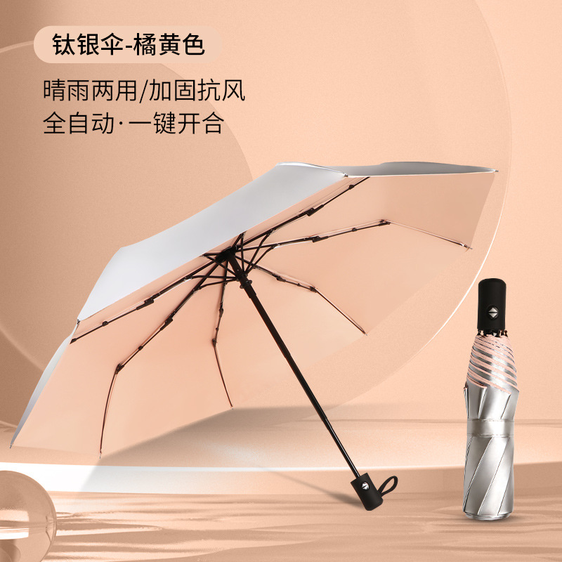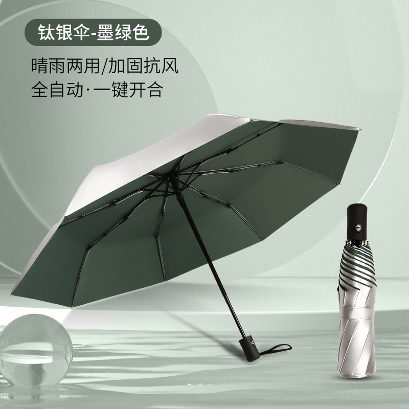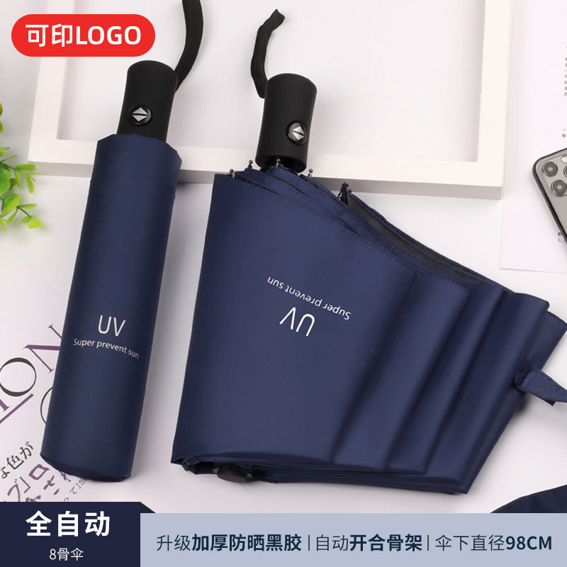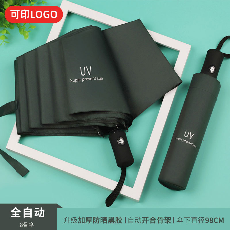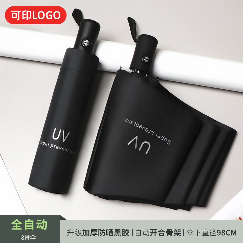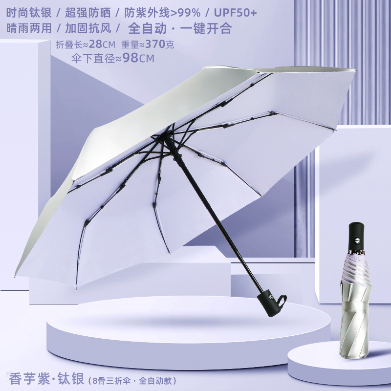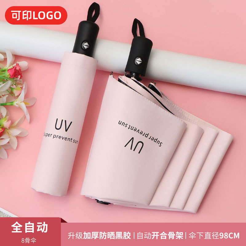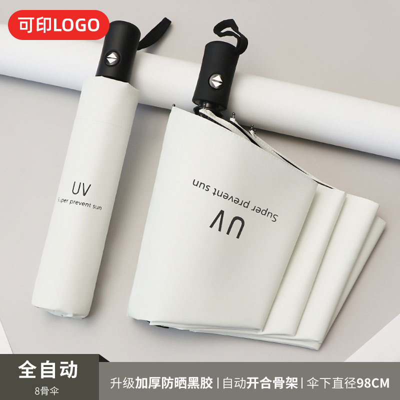 자동 우산 티타늄 실버 우산 크로스 보더 태양 우산 선 스크린 차양 우산 햇빛과 비 이중 사용 여성의 자외선 차단 광고 우산 로고