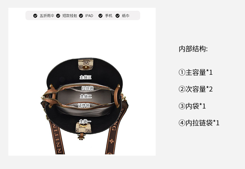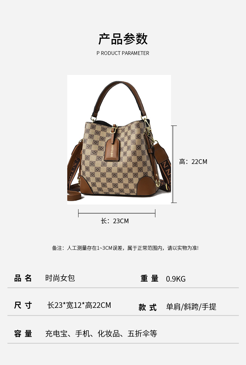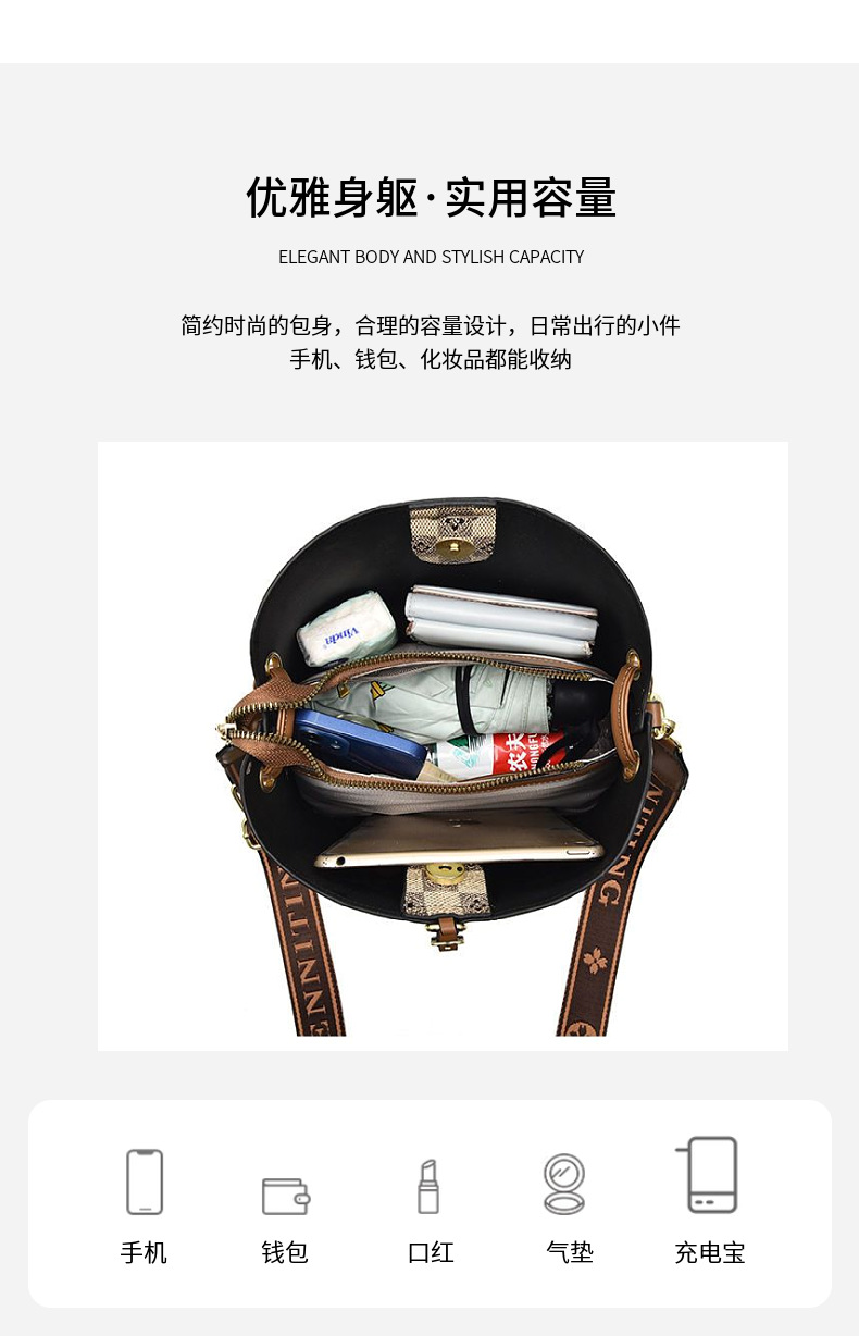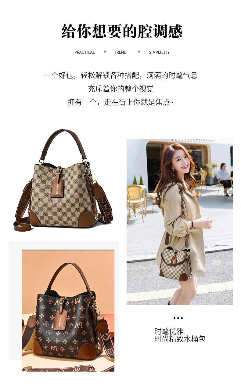 [라이브 폭발] 2023 새로운 패션 프린트 3 스트랩 대비 컬러 숄더 크로스 바디 여성용 휴대용 버킷 백스토어 가기